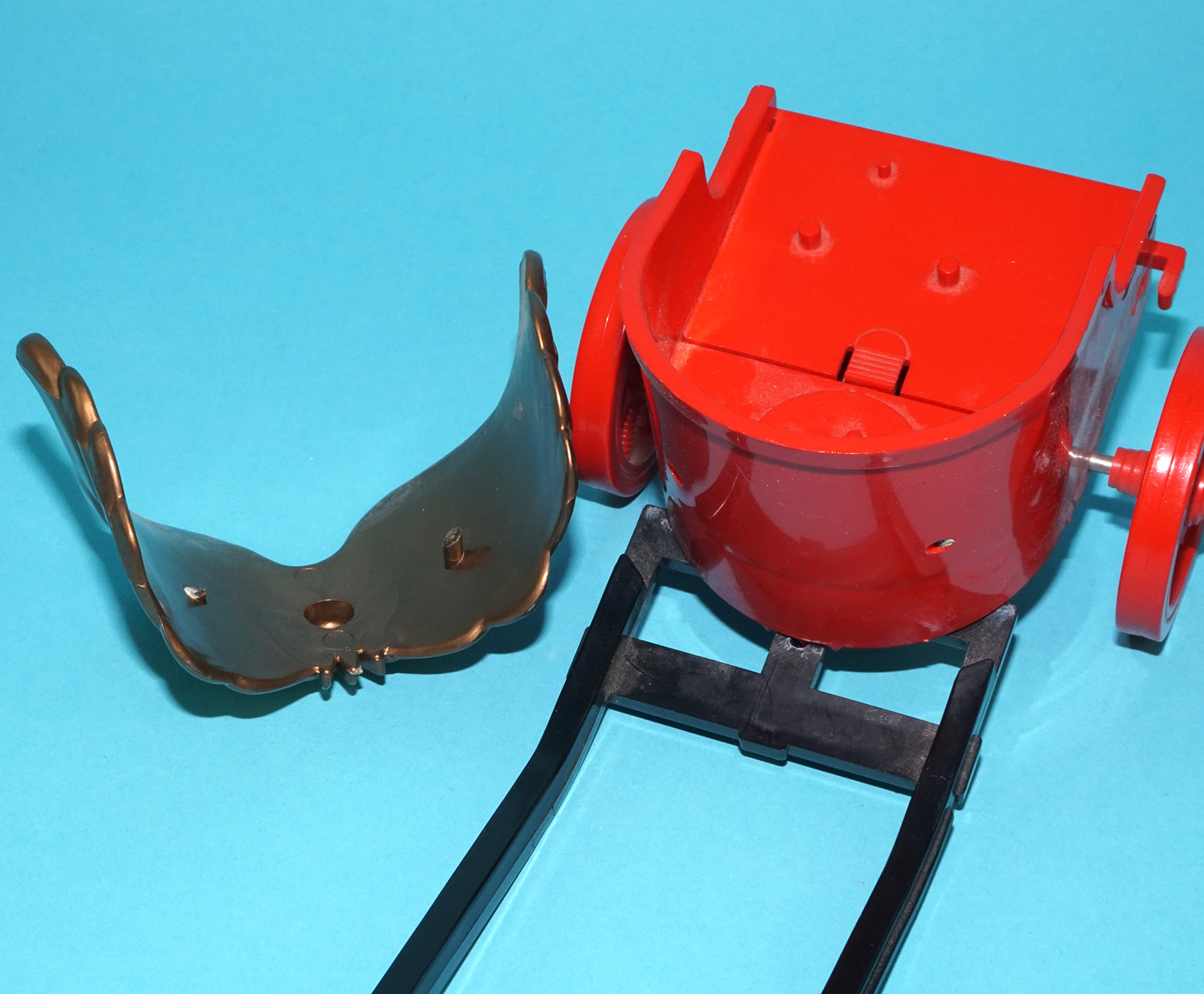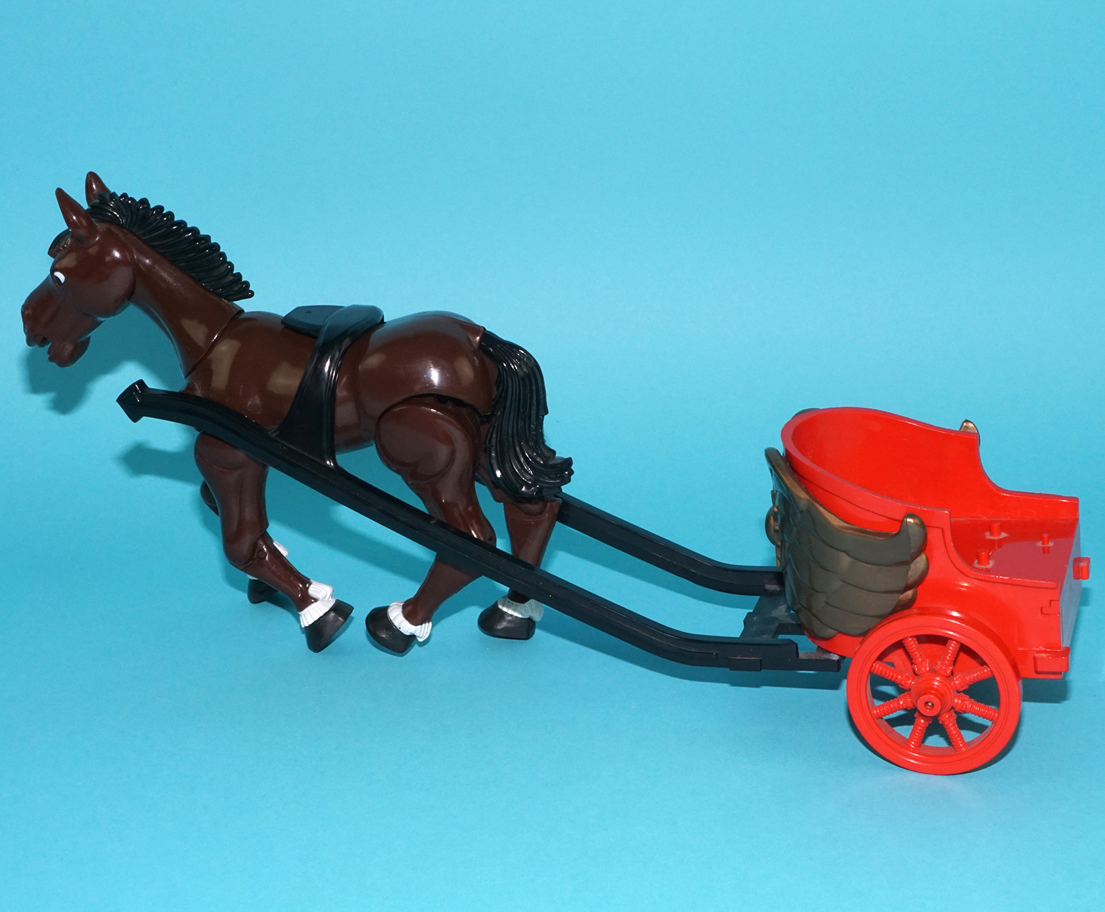 Poor box. 100% complete! Does not work! Clean battery compartment. One broken horse leg. Overall very good!