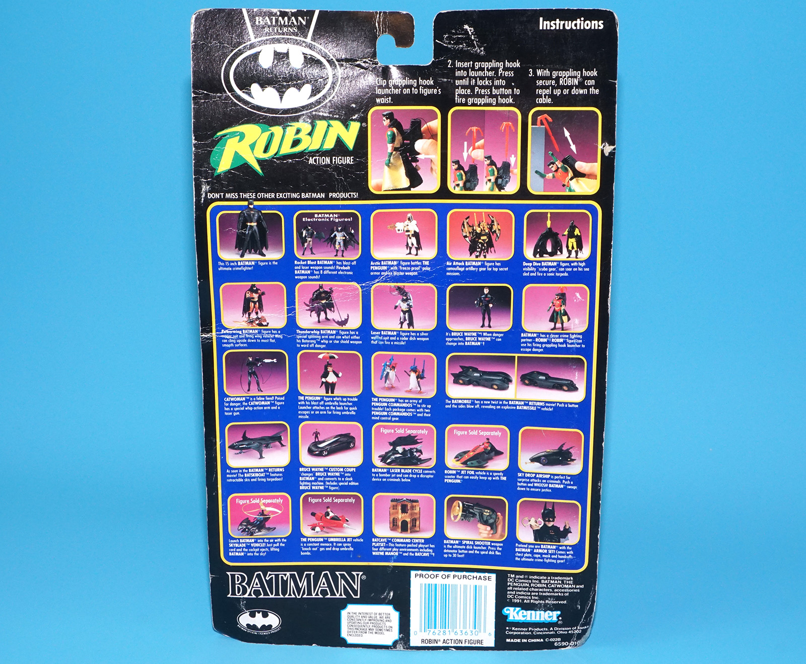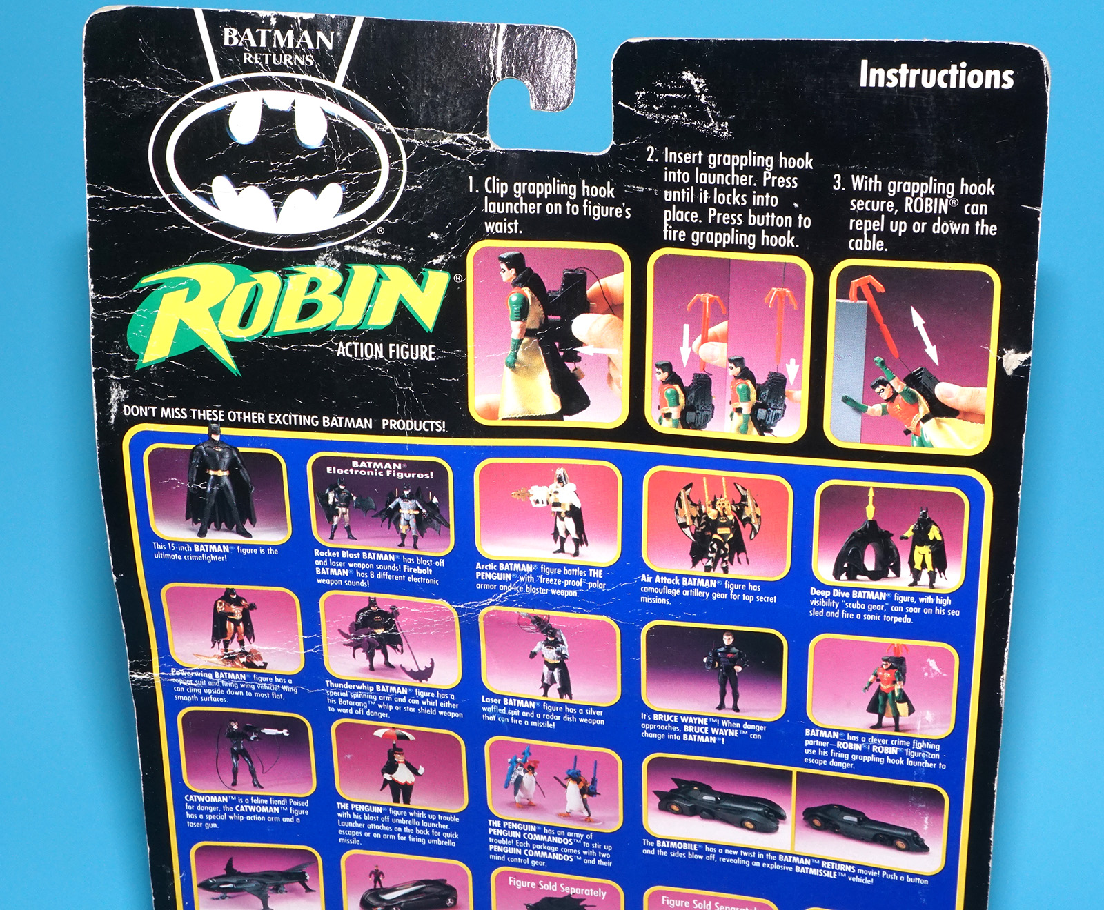 BATMAN RETURNS ROBIN GRAPPLING HOOK MOC MOSC US CARD 1991 KENNER READ