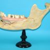 Paper mache, composite, plaster on wooden stand. Some minor damage / wear and tear. Please study pictures for details. Overall very good!