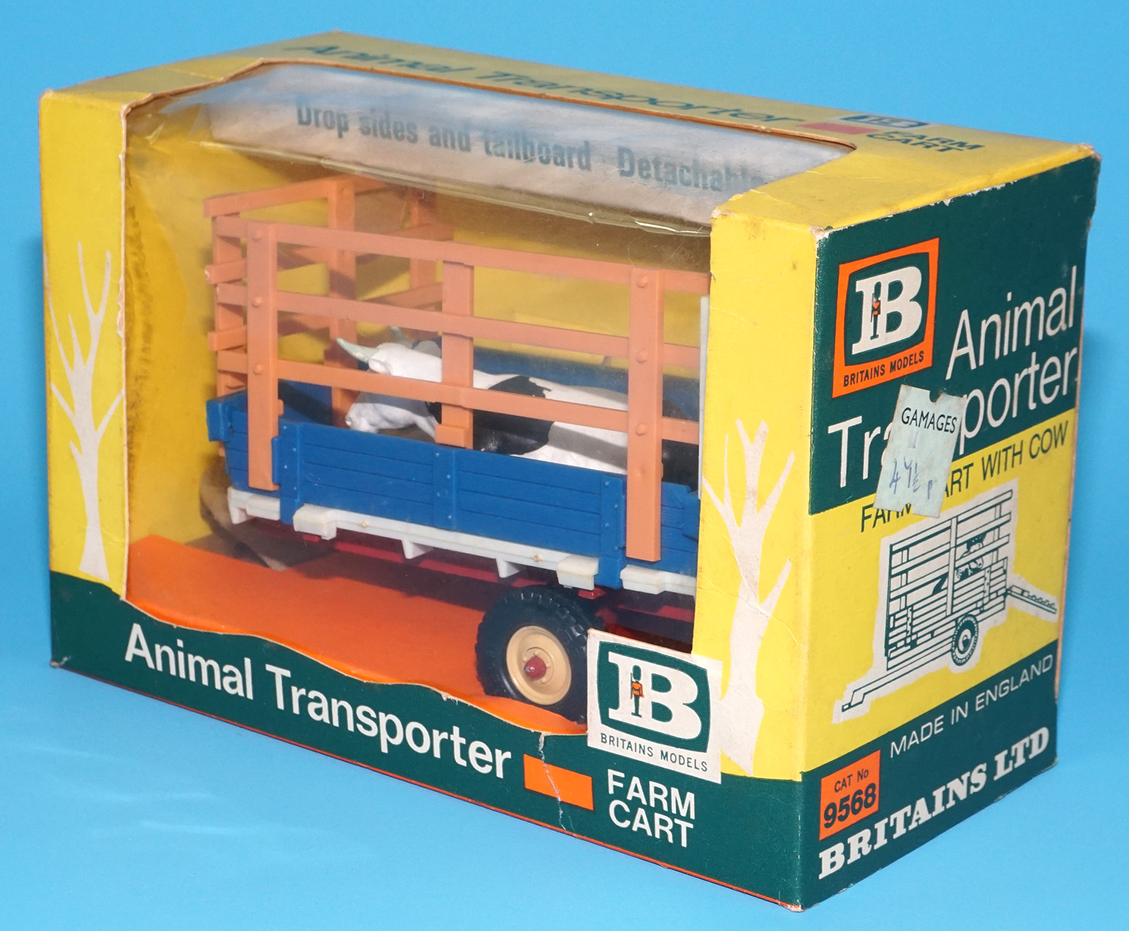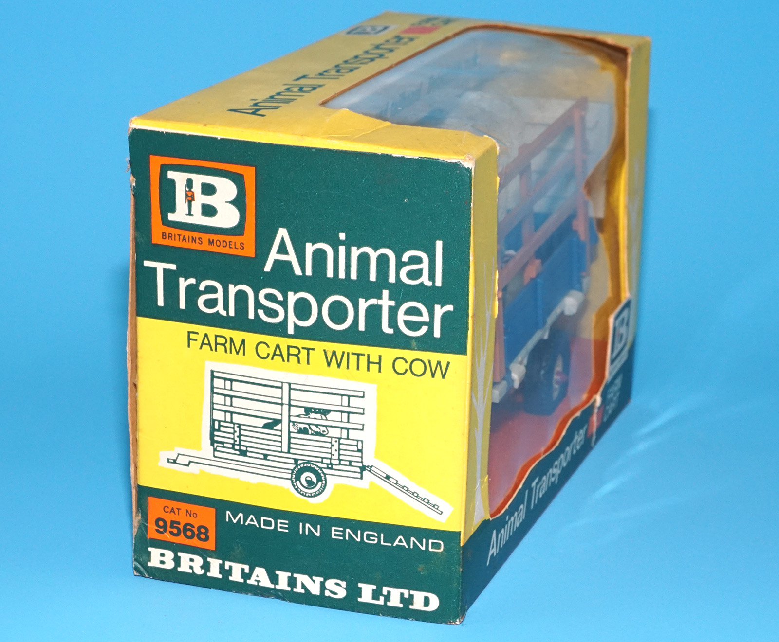 BRITAINS FARM #9568 ANIMAL TRANSPORTER FARM CART & COW MIB ORIGINAL BOX 1960s ENGLAND HTF