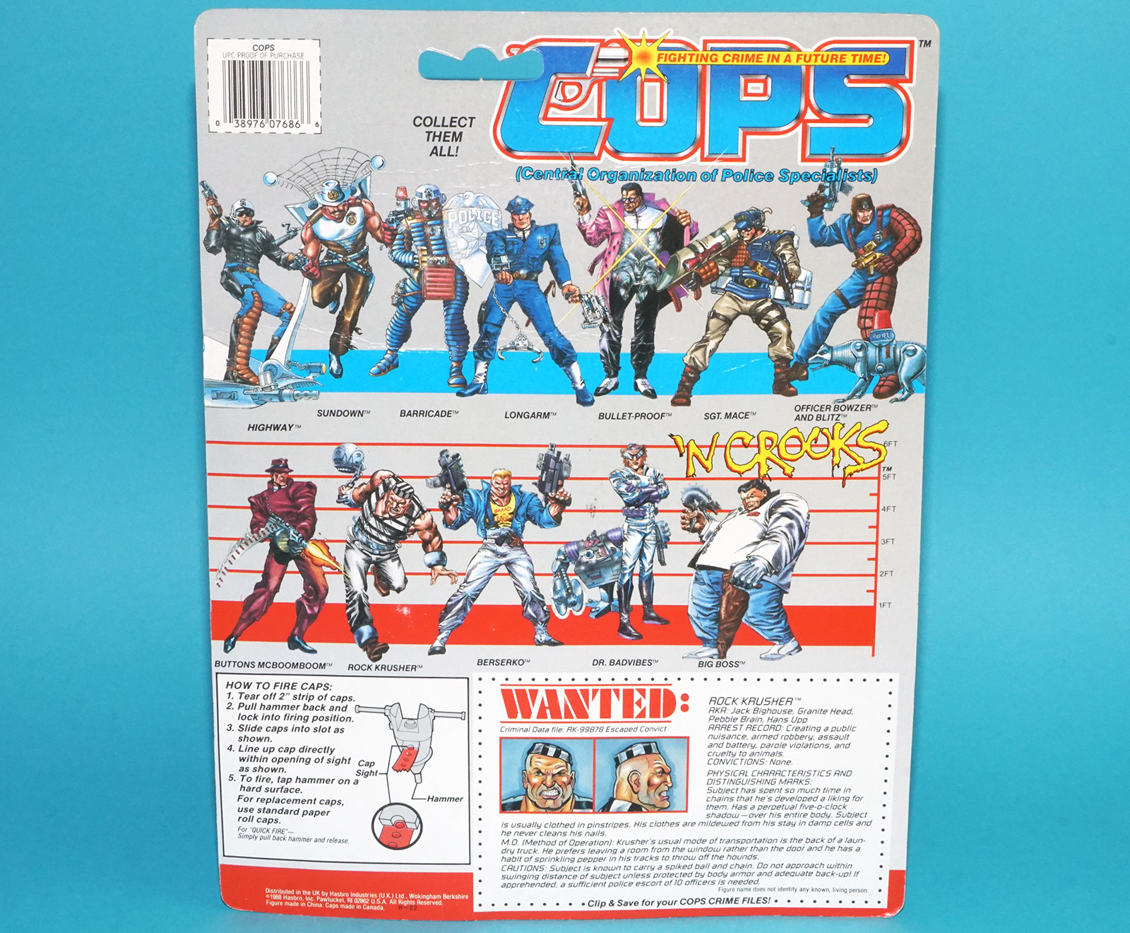 COPS N CROOKS ROCK KRUSHER MOC MOSC SEALED CARD 1988 HASBRO