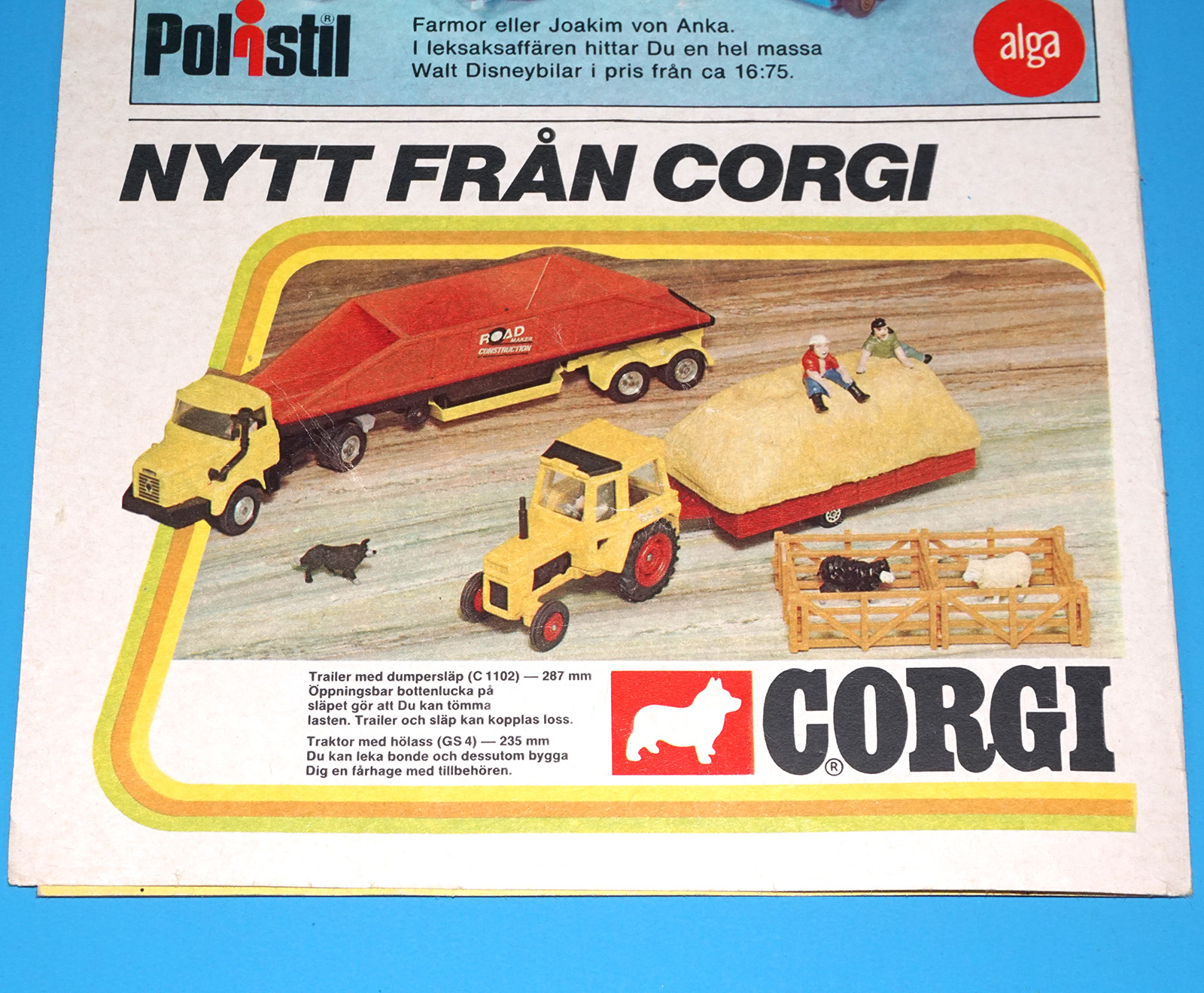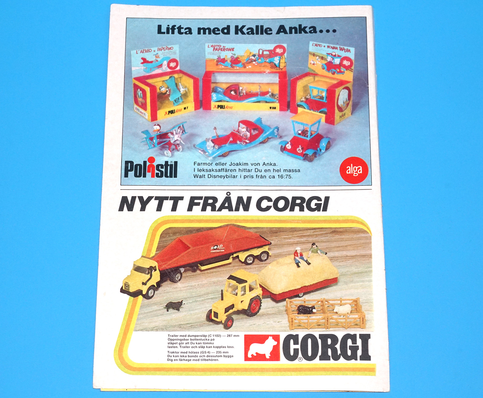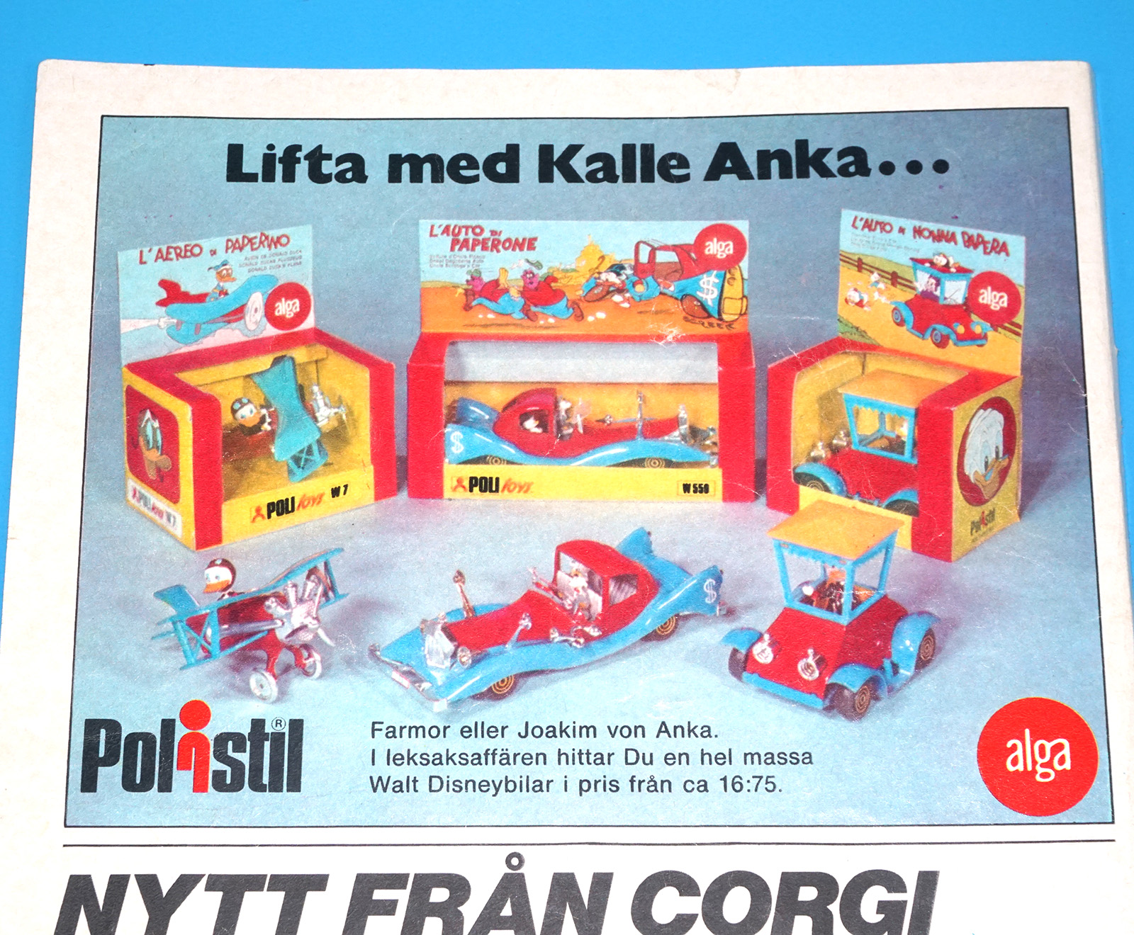 CORGI TOYS MAGAZINE ADVERT 1974 SCANDITOY SWEDEN KALLE ANKA POLISTIL DISNEY CARS