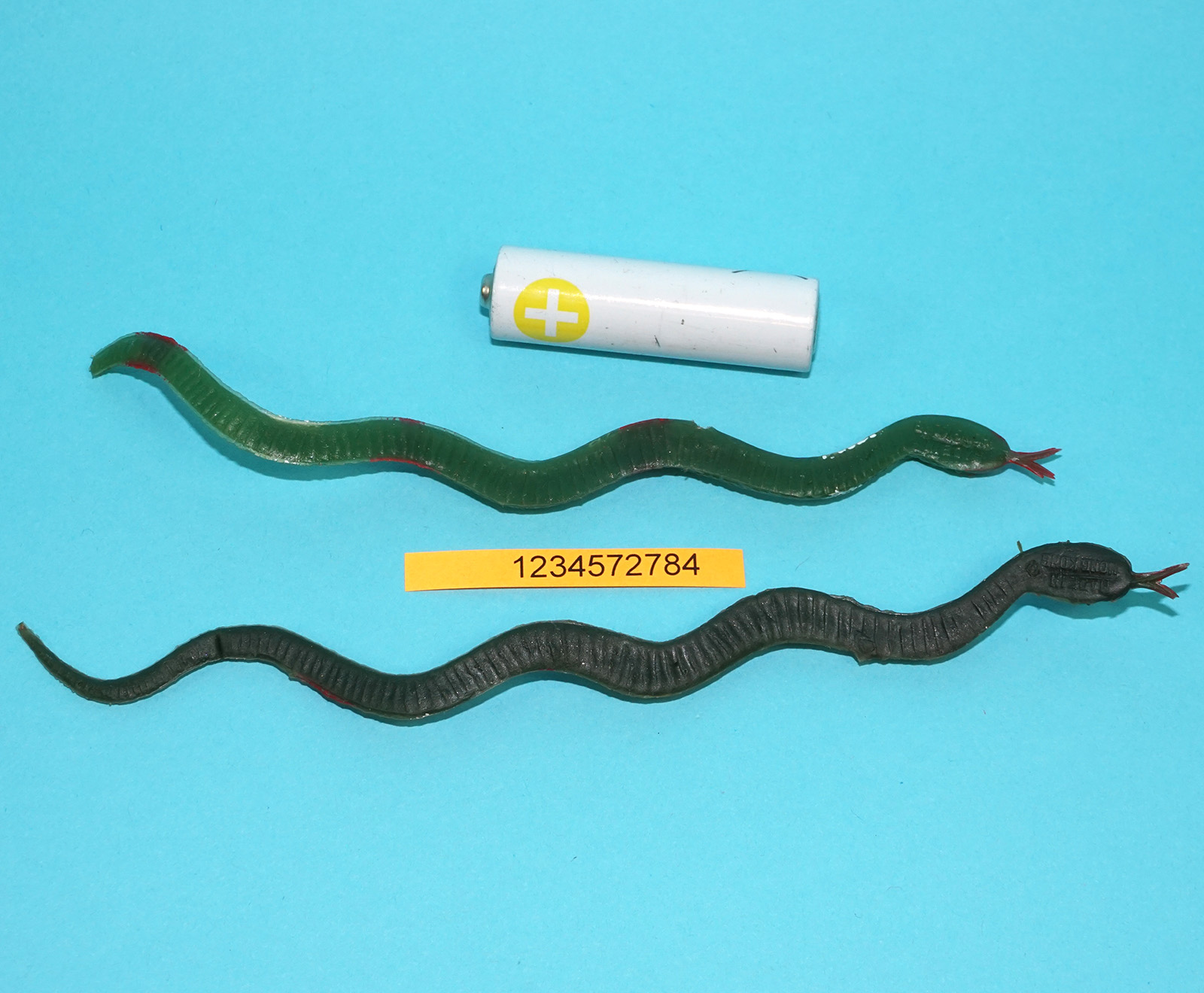 CREEPY CRAWLIES RUBBER JIGGLER TOY SNAKE (2X) 1960s HONG KONG UGLIES