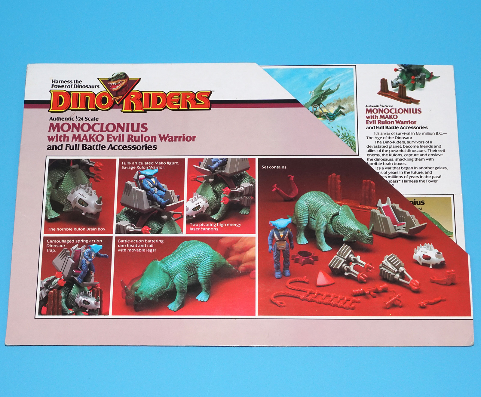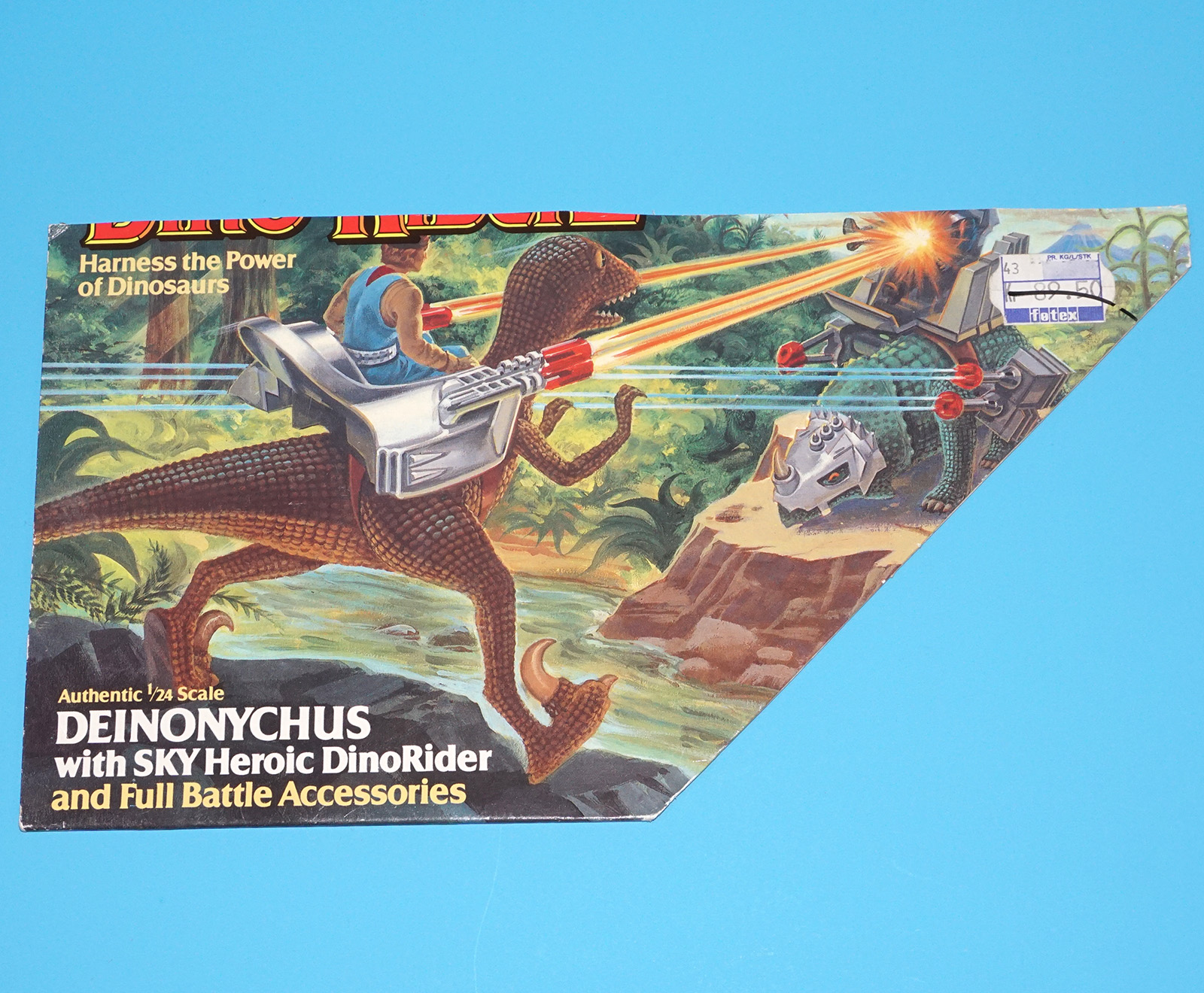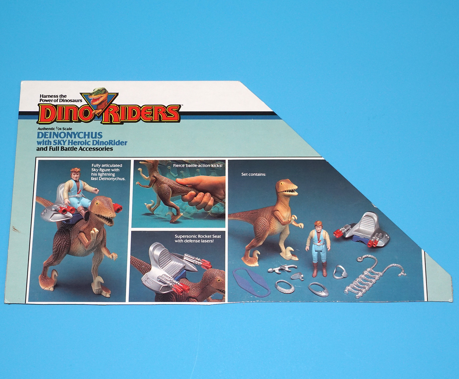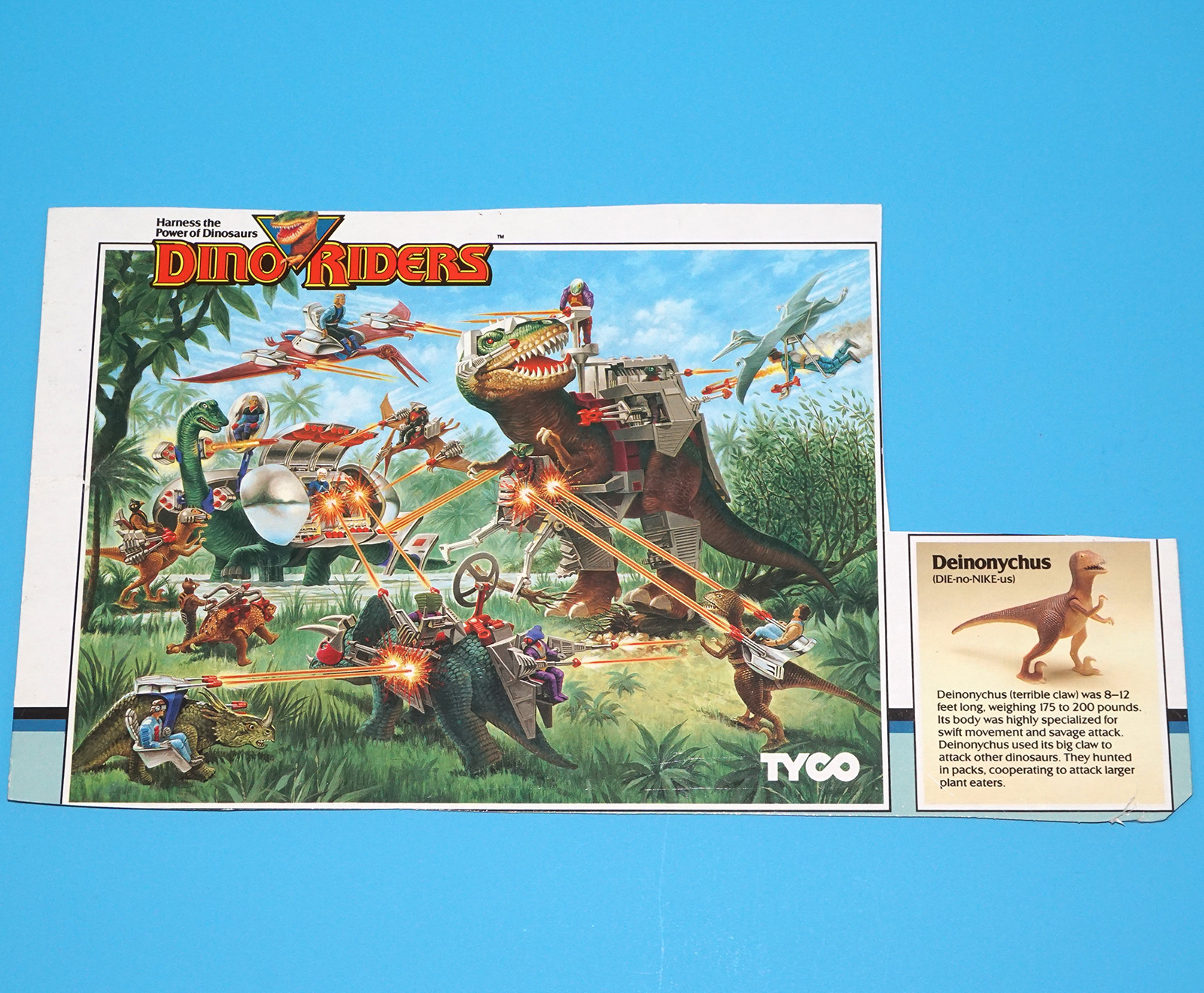 DINO RIDERS BOX CUT OUTS FLAP FILE CARD DEINONYCHUS WITH SKY 1988 TYCO