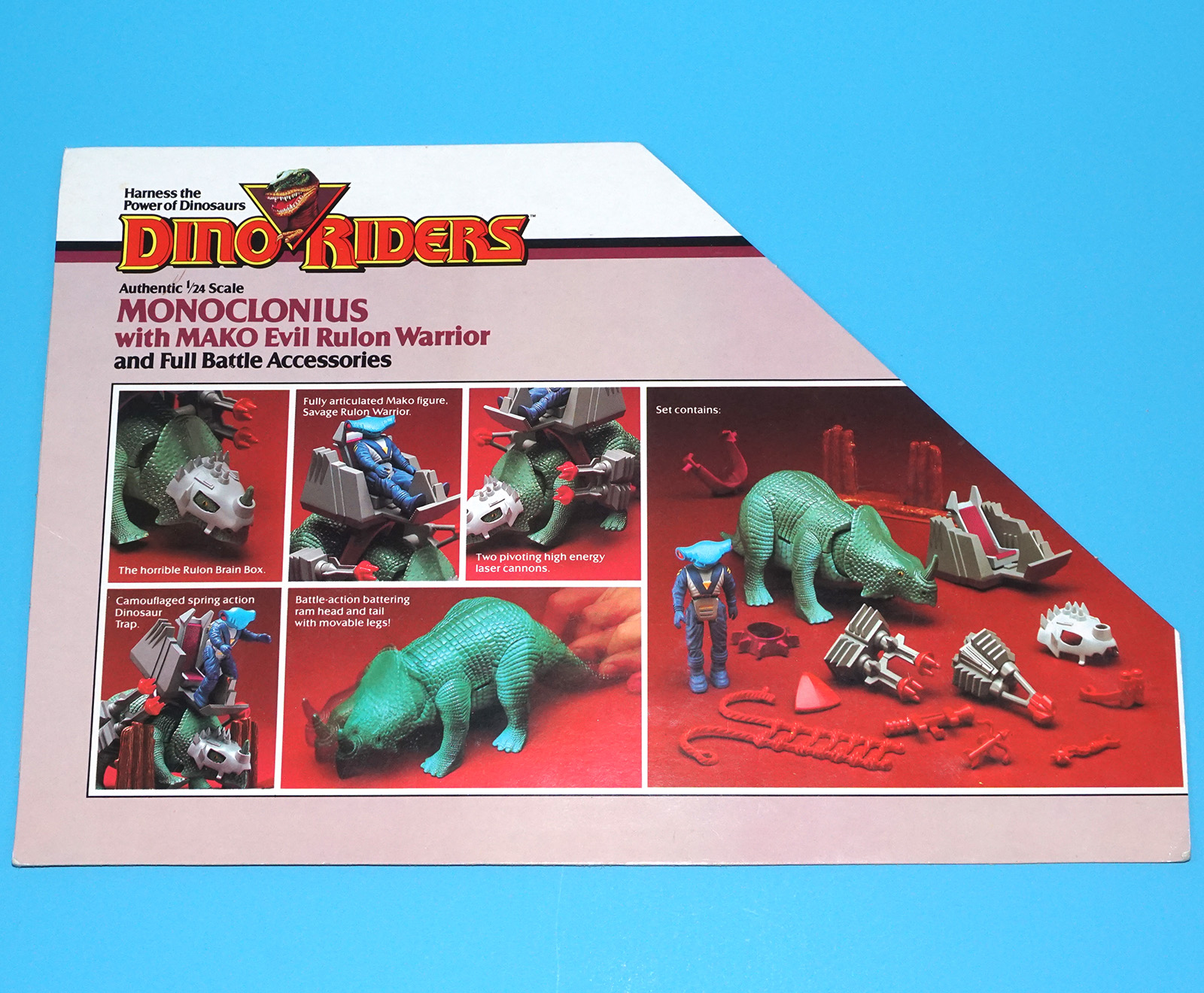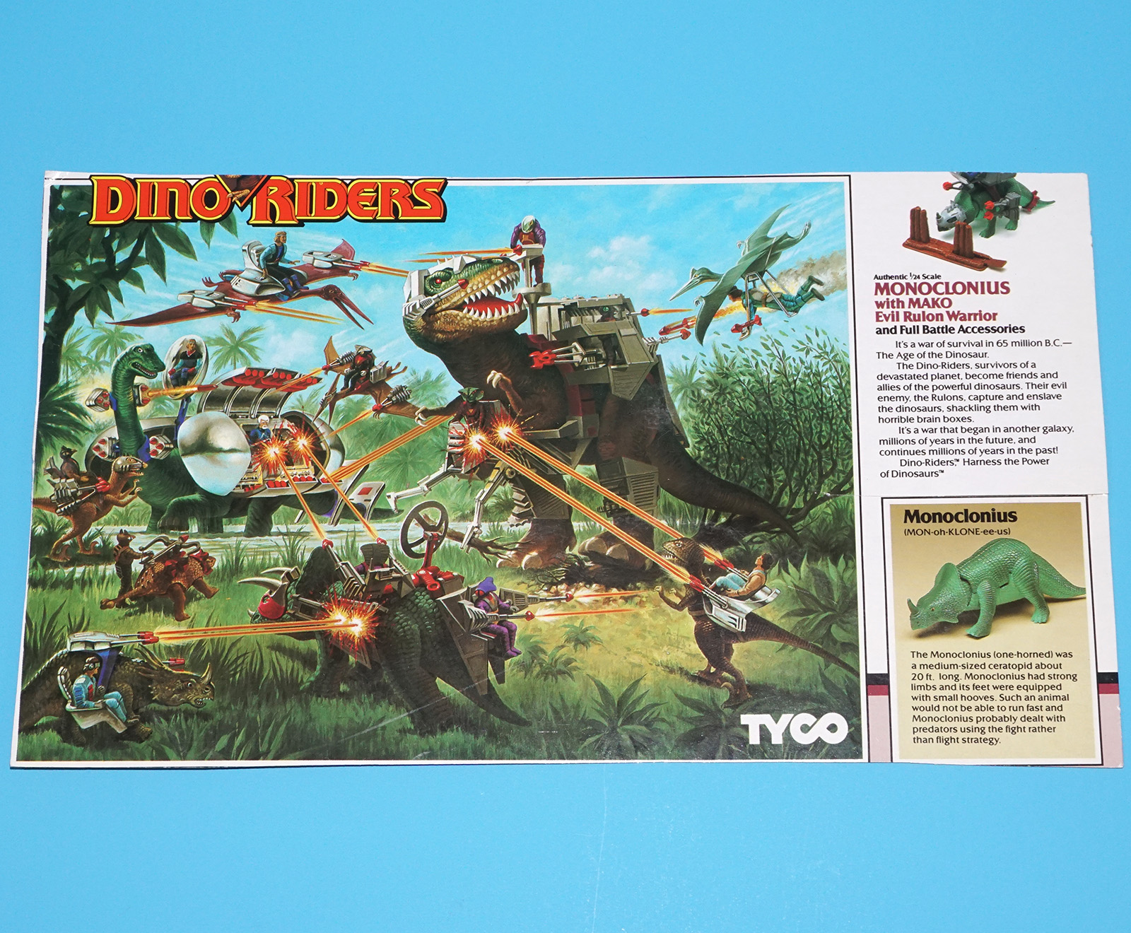 DINO RIDERS BOX CUT OUTS FLAP FILE CARD MONOKLONIUS WITH MAKO 1988 TYCO