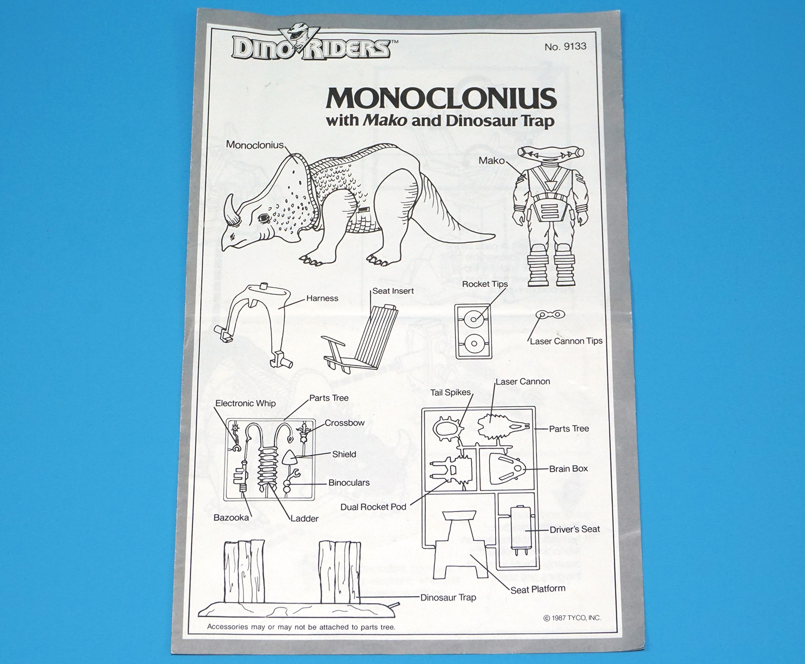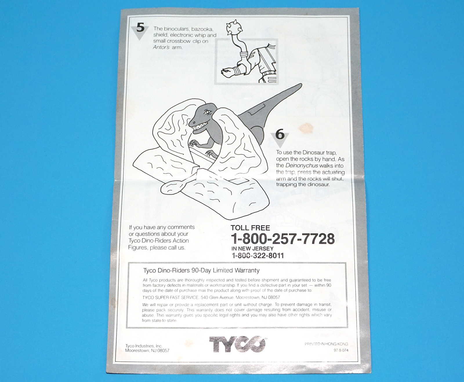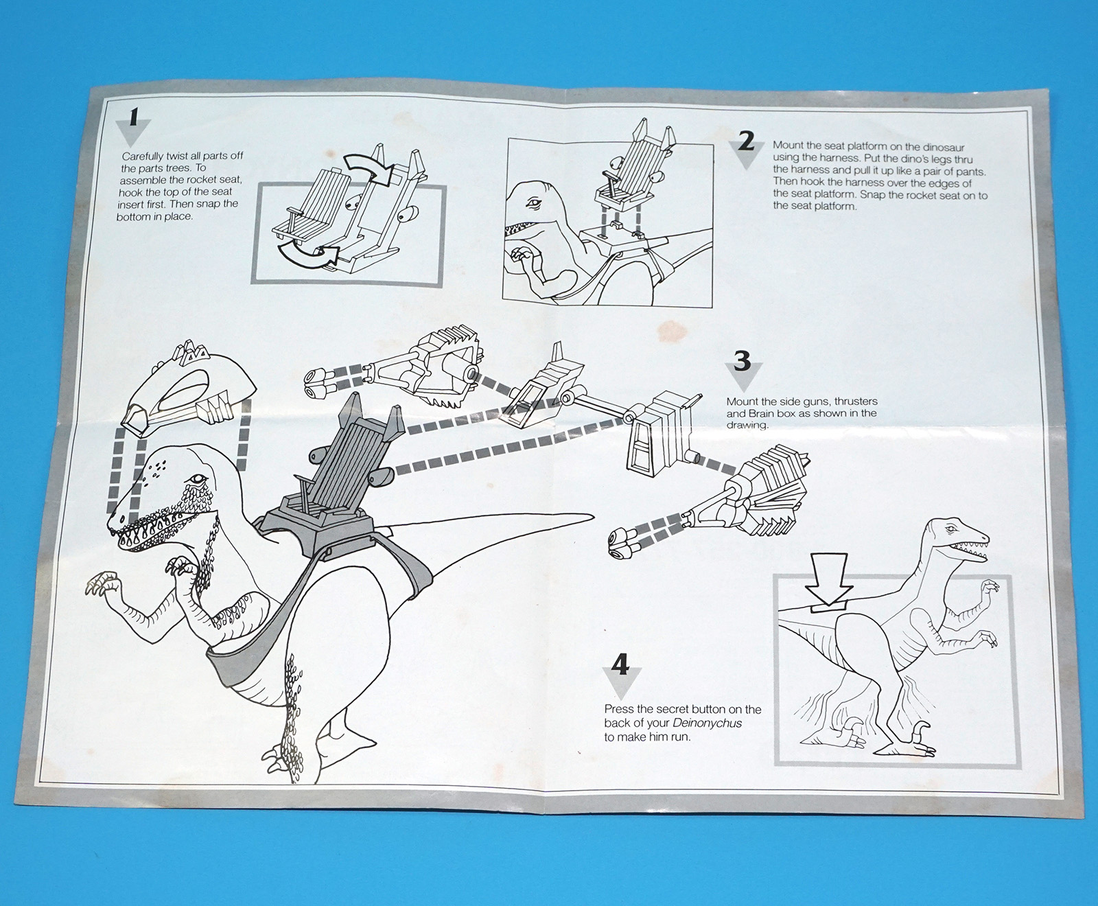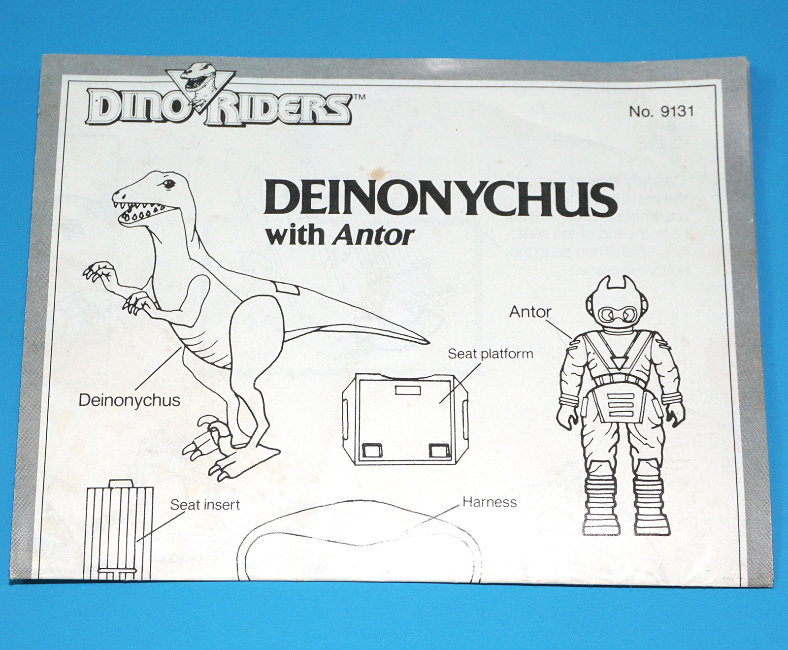 DINO RIDERS ORIGINAL INSTRUCTIONS MANUAL SHEET DEINONYCHUS WITH ANTOR US USA 1988 TYCO