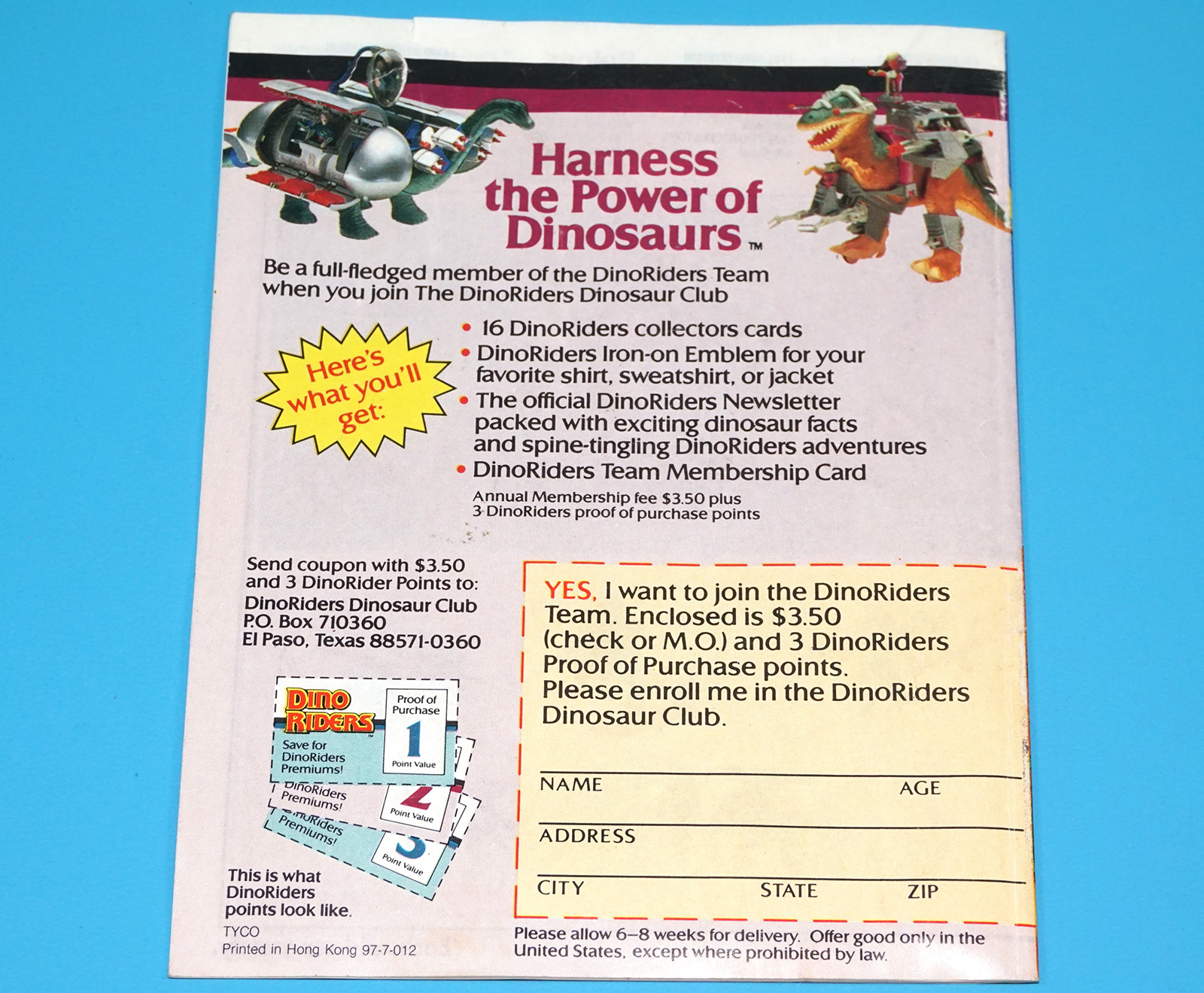 DINO RIDERS TOY CATALOG KATALOG MINI COMIC US USA 1989 TYCO