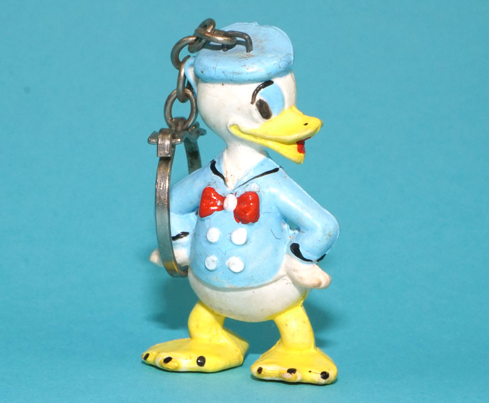 DISNEY MICKEY & FRIENDS PVC TOY FIGURE DONALD DUCK KEYRING KEYCHAIN 1960s HEIMO GERMANY