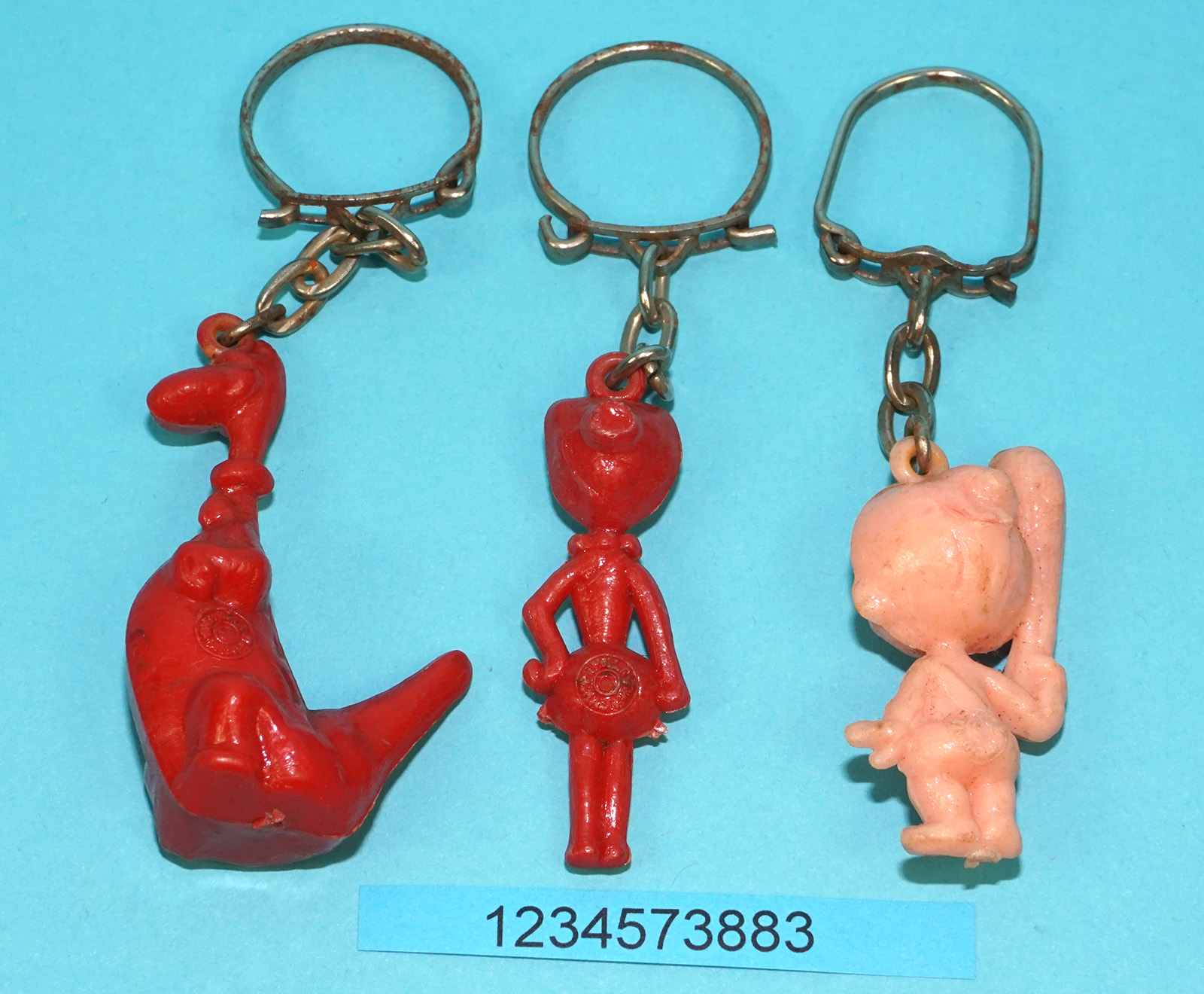 FLINTSTONES KEYRINGS KEYCHAIN LOT DINO WILMA BAM-BAM 1968 MELIOR HOLLAND HANNA BARBERA