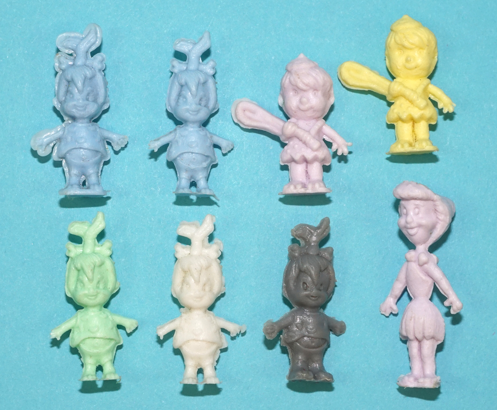 FLINTSTONES PVC MINI FIGURES (8X) WILMA BAM BAM PEBBLES 1960s TWINKY CEREAL PROMO PREMIUM
