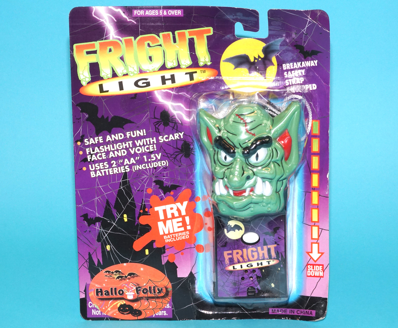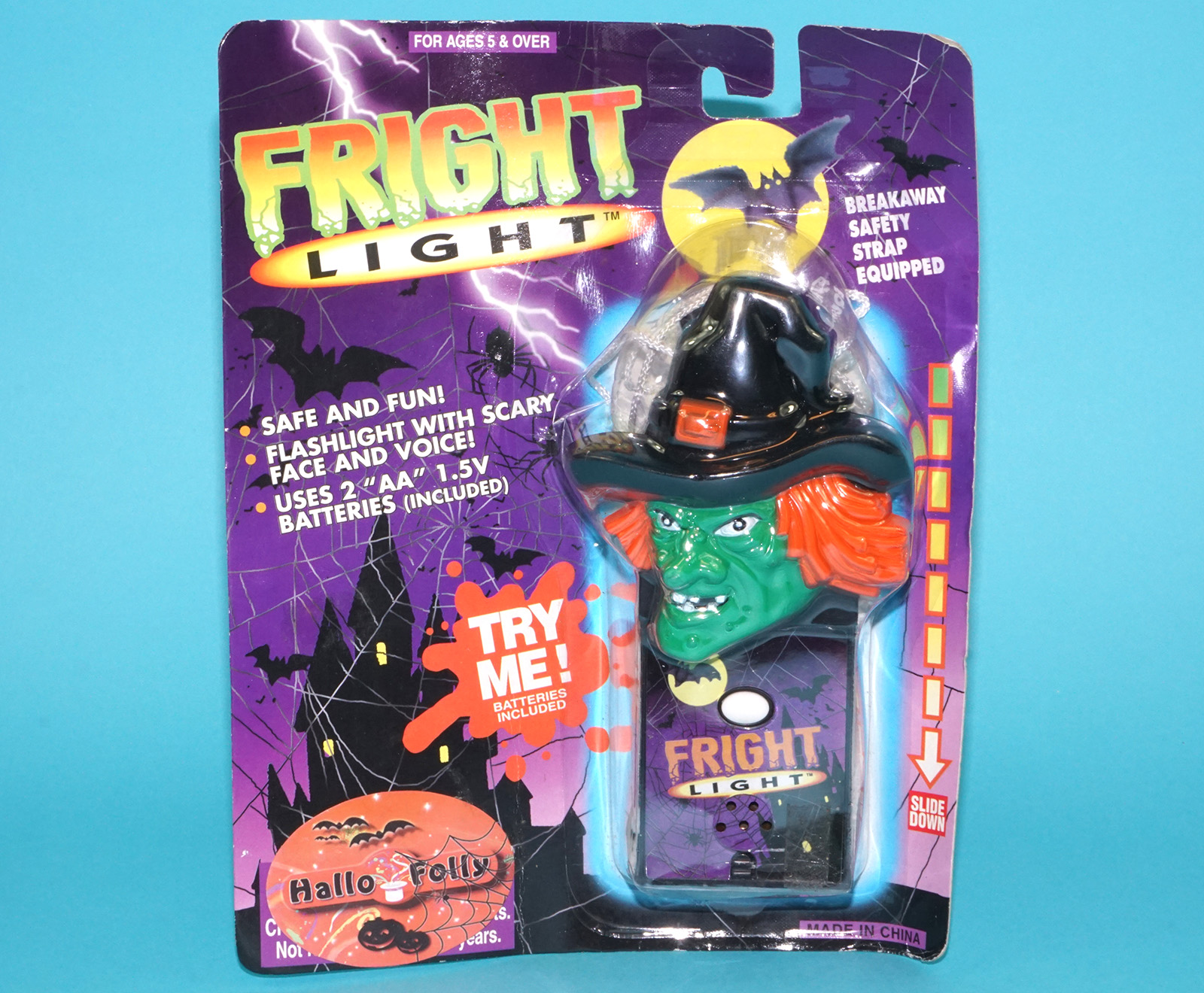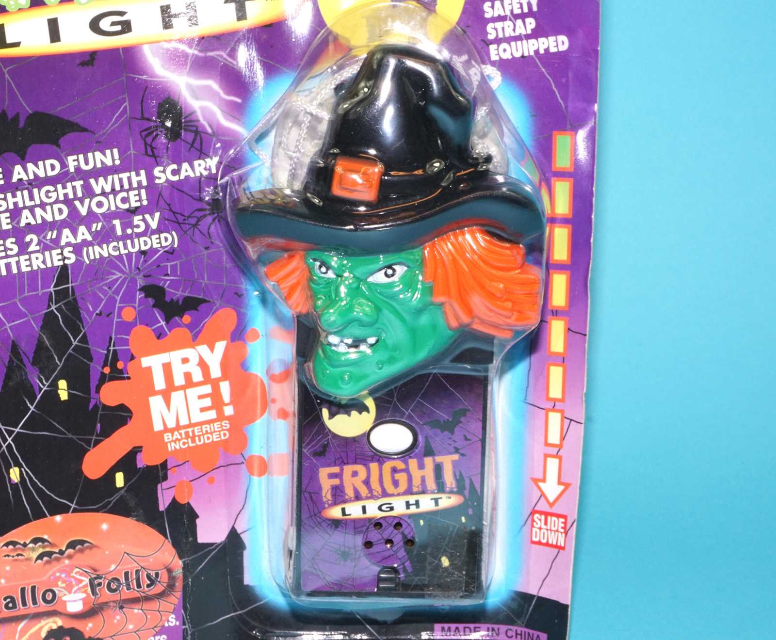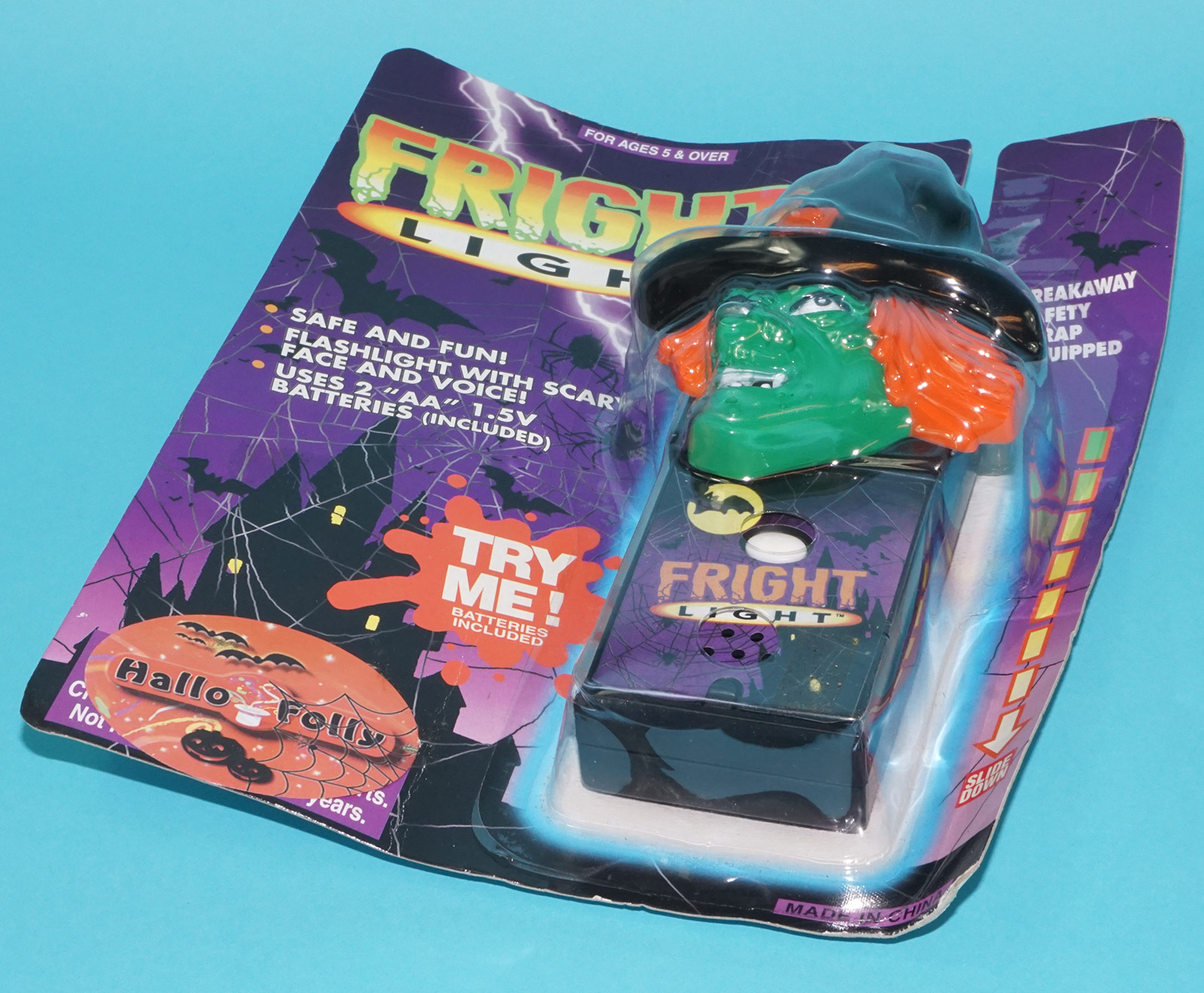 FRIGHT LIGHT MONSTER FLASHLIGHT WITCH MOC MOSC EURO CARD 1990s HELLO FOLLY CHINA READ