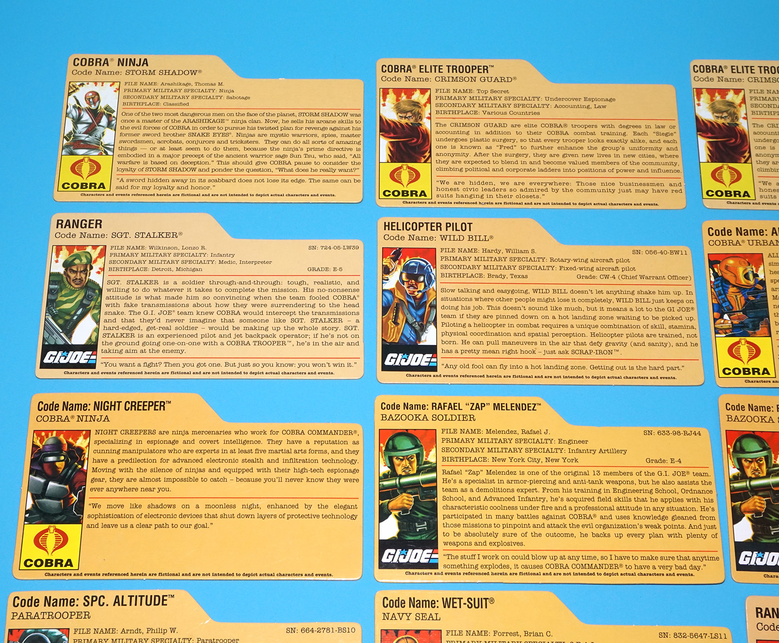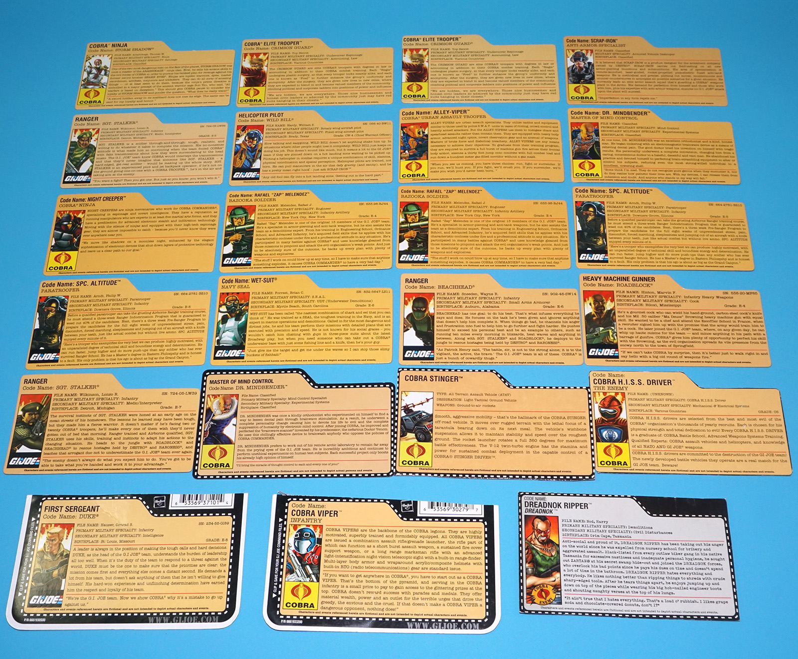 GI JOE FILE CARD LOT FILECARDS 25TH ANNIVERSARY (23X) 2007-2009 HASBRO