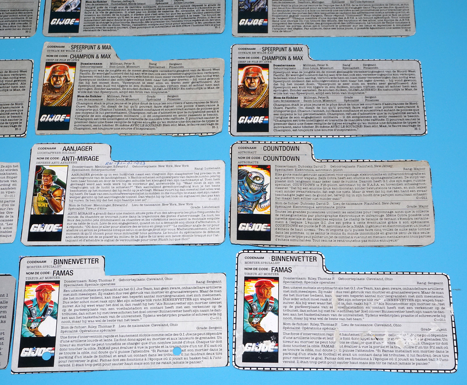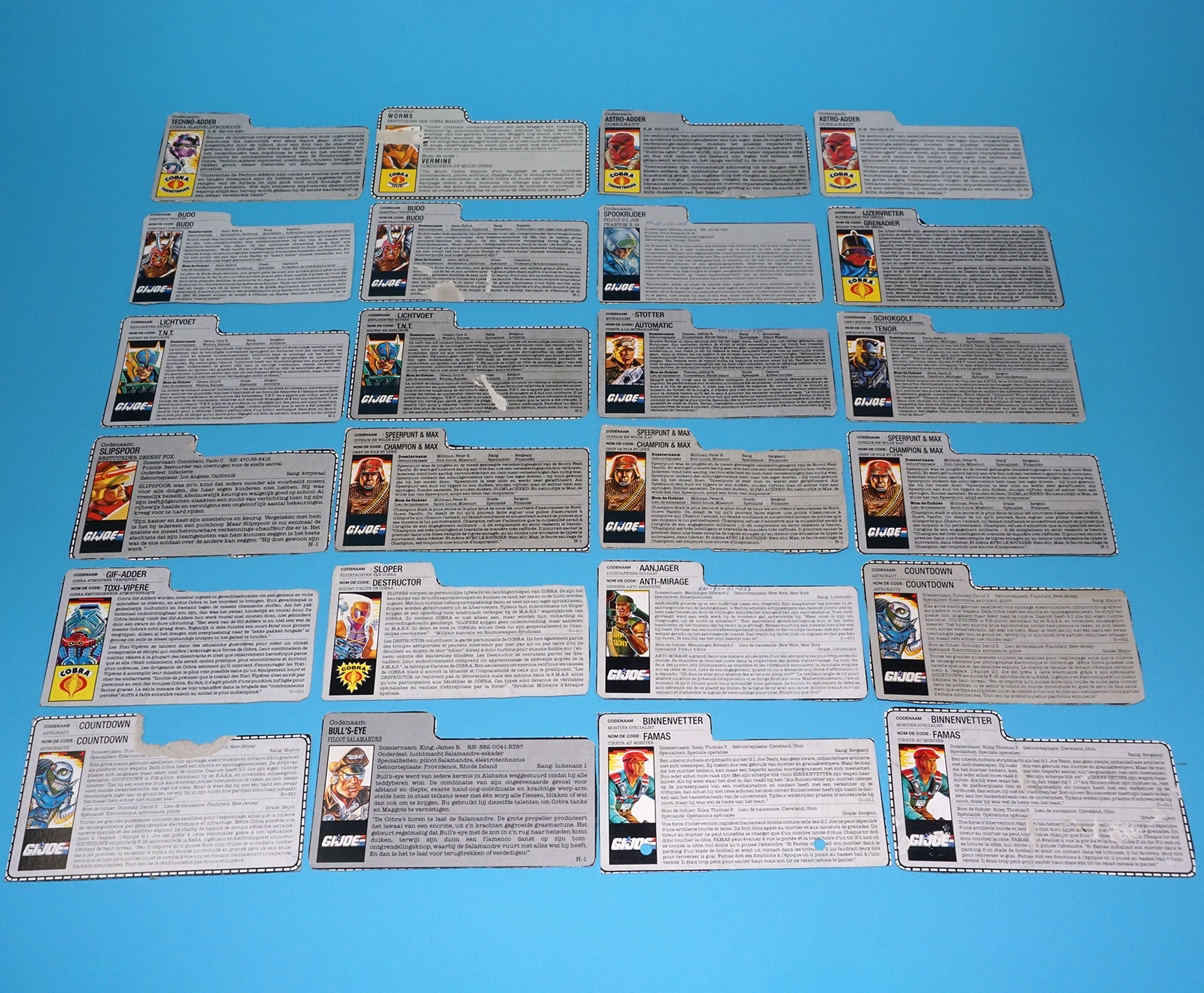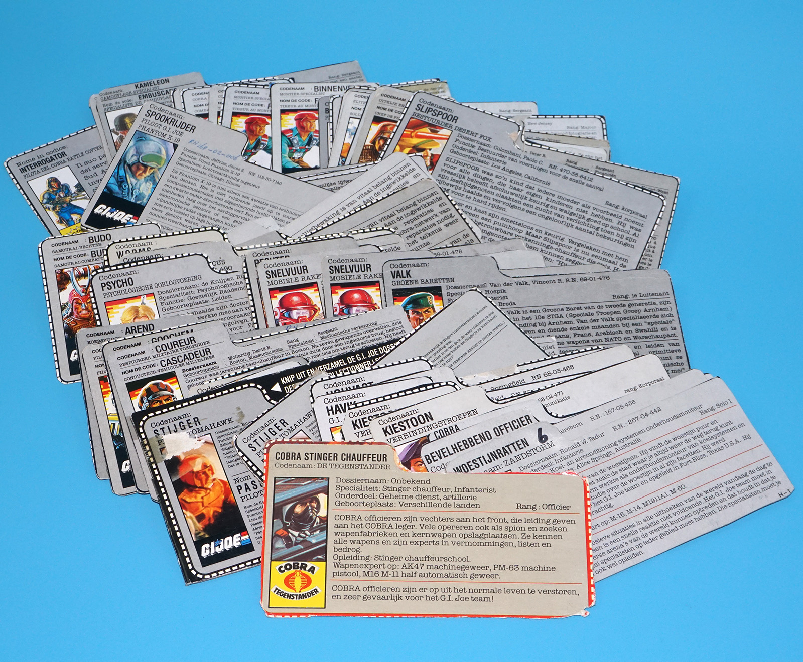 GI JOE FILE CARD LOT FILECARDS (54X) NL FR BENELUX DUTCH EURO 1984-1991 HASBRO