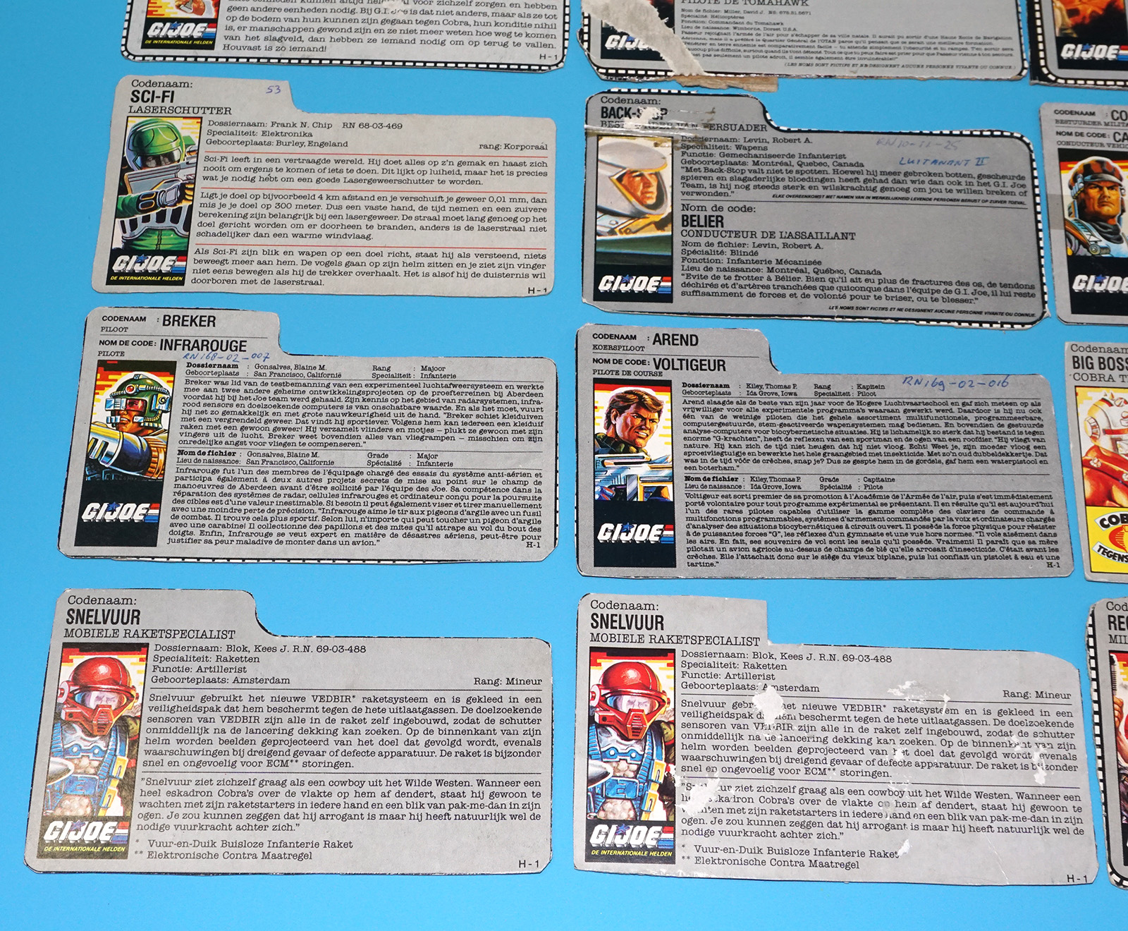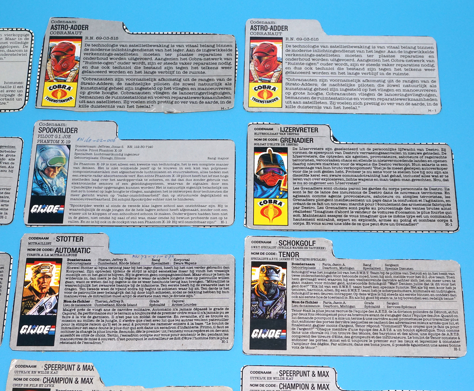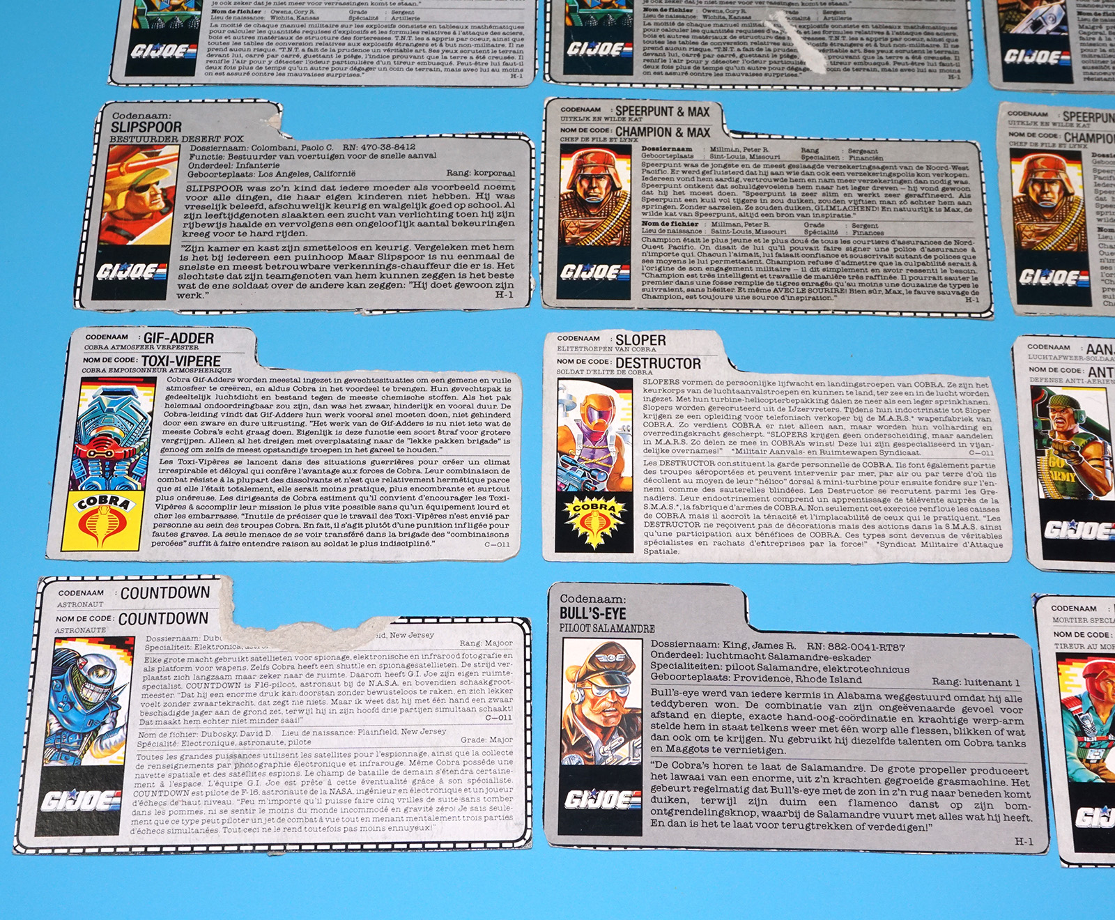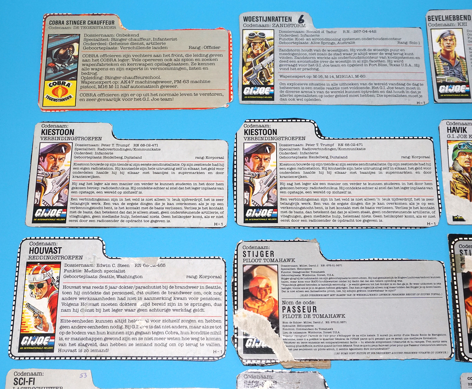 GI JOE FILE CARD LOT FILECARDS (54X) NL FR BENELUX DUTCH EURO 1984-1991 HASBRO