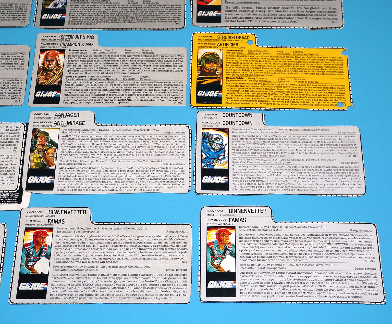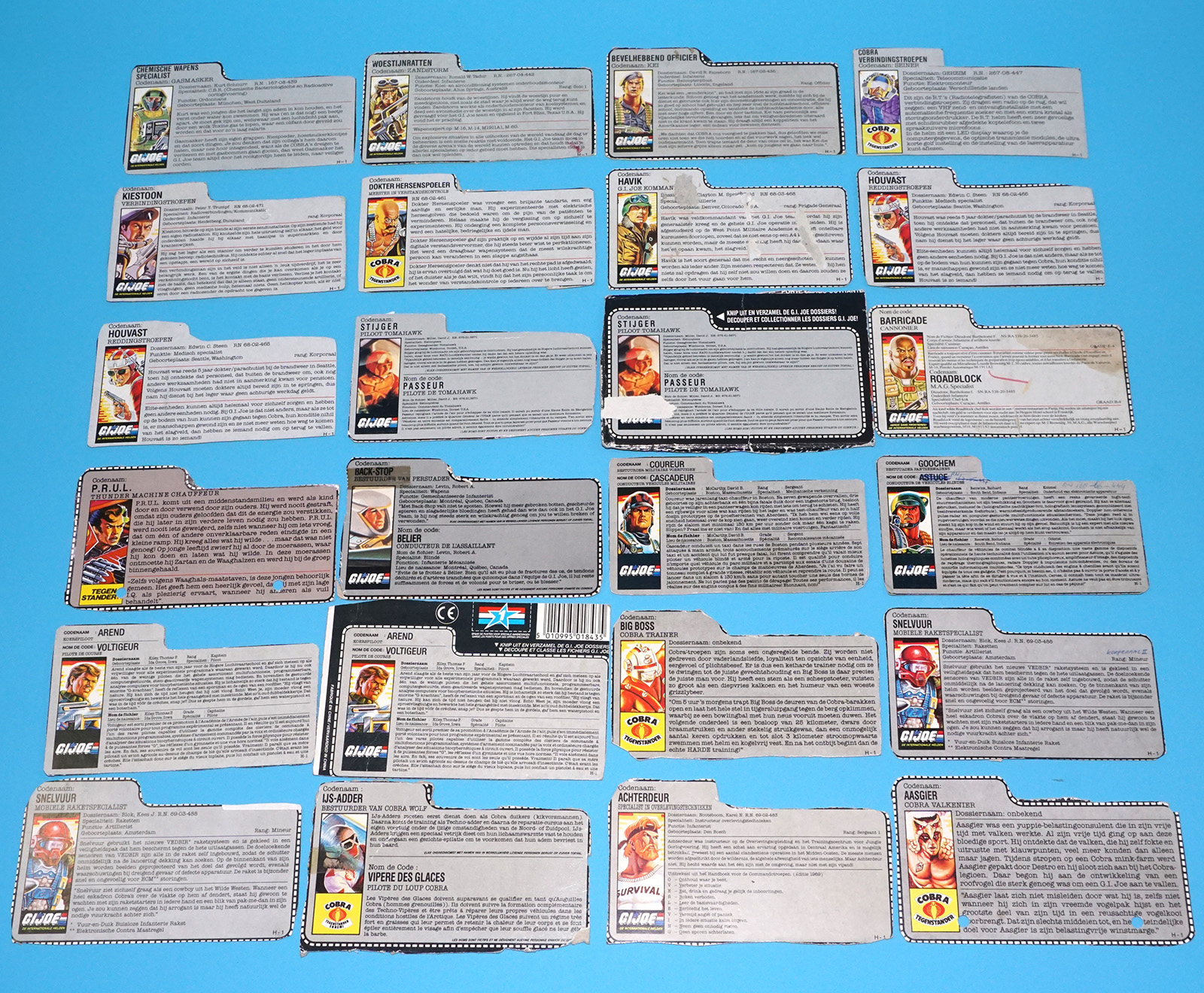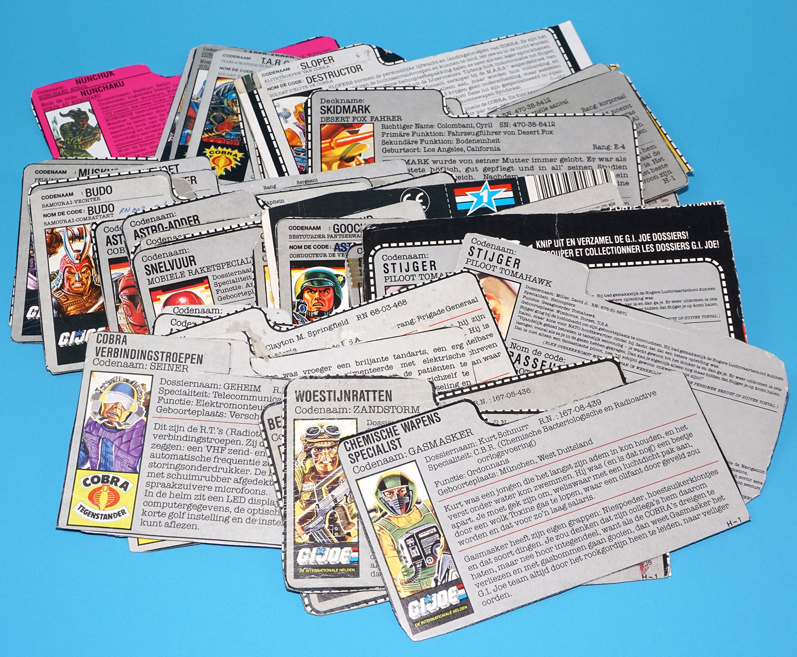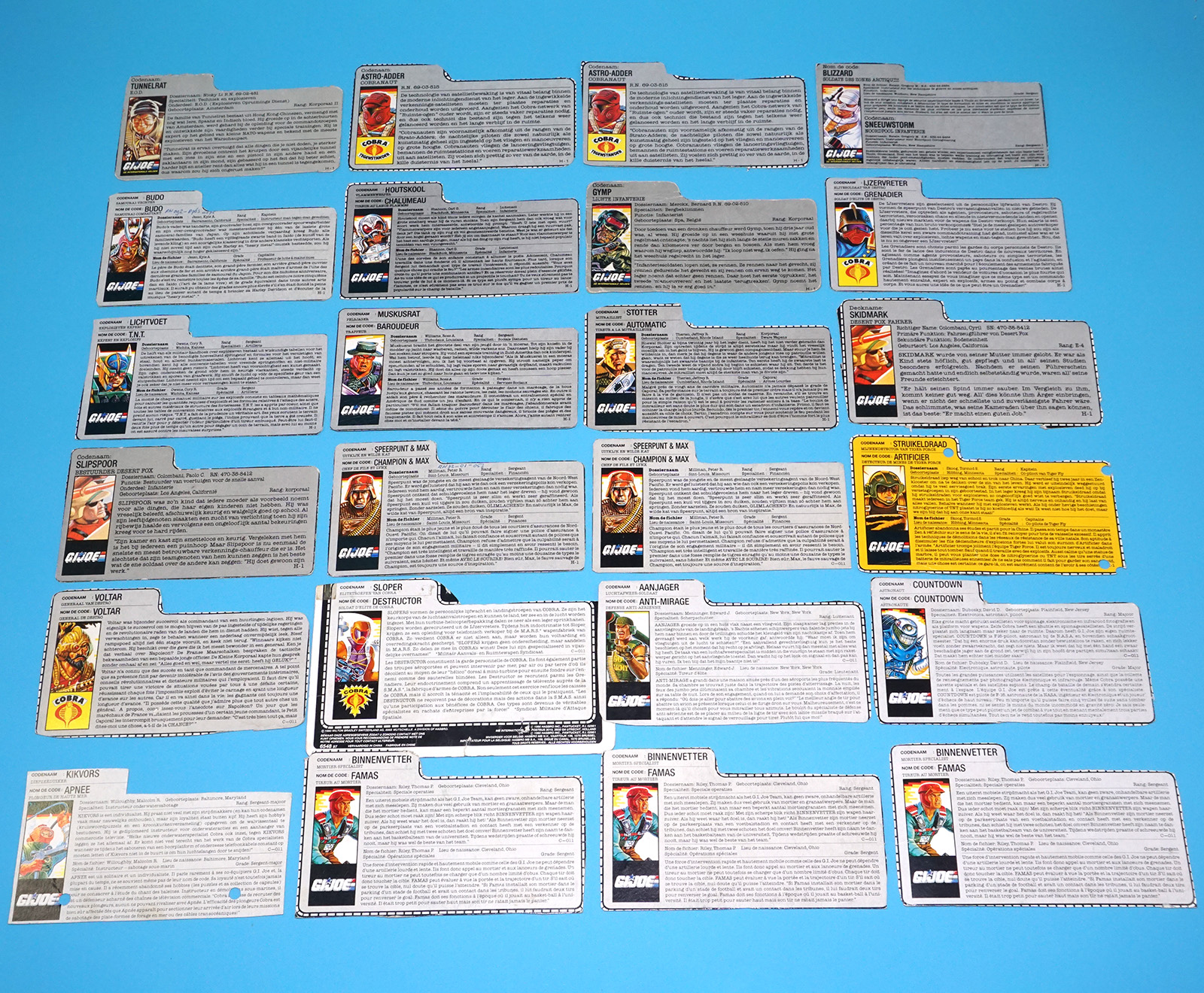 GI JOE FILE CARD LOT FILECARDS (54X) NL FR BENELUX DUTCH EURO 1985-1992 HASBRO