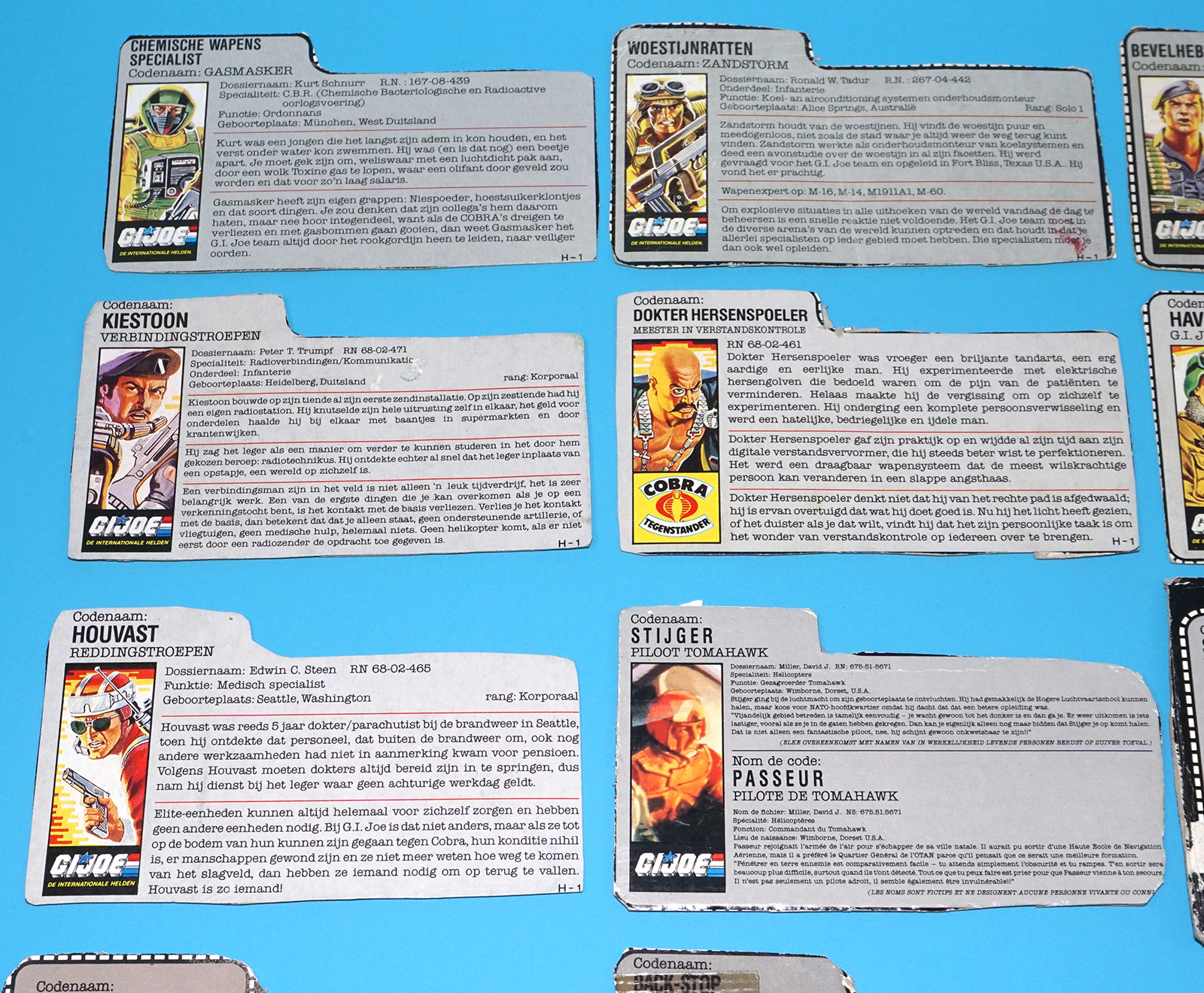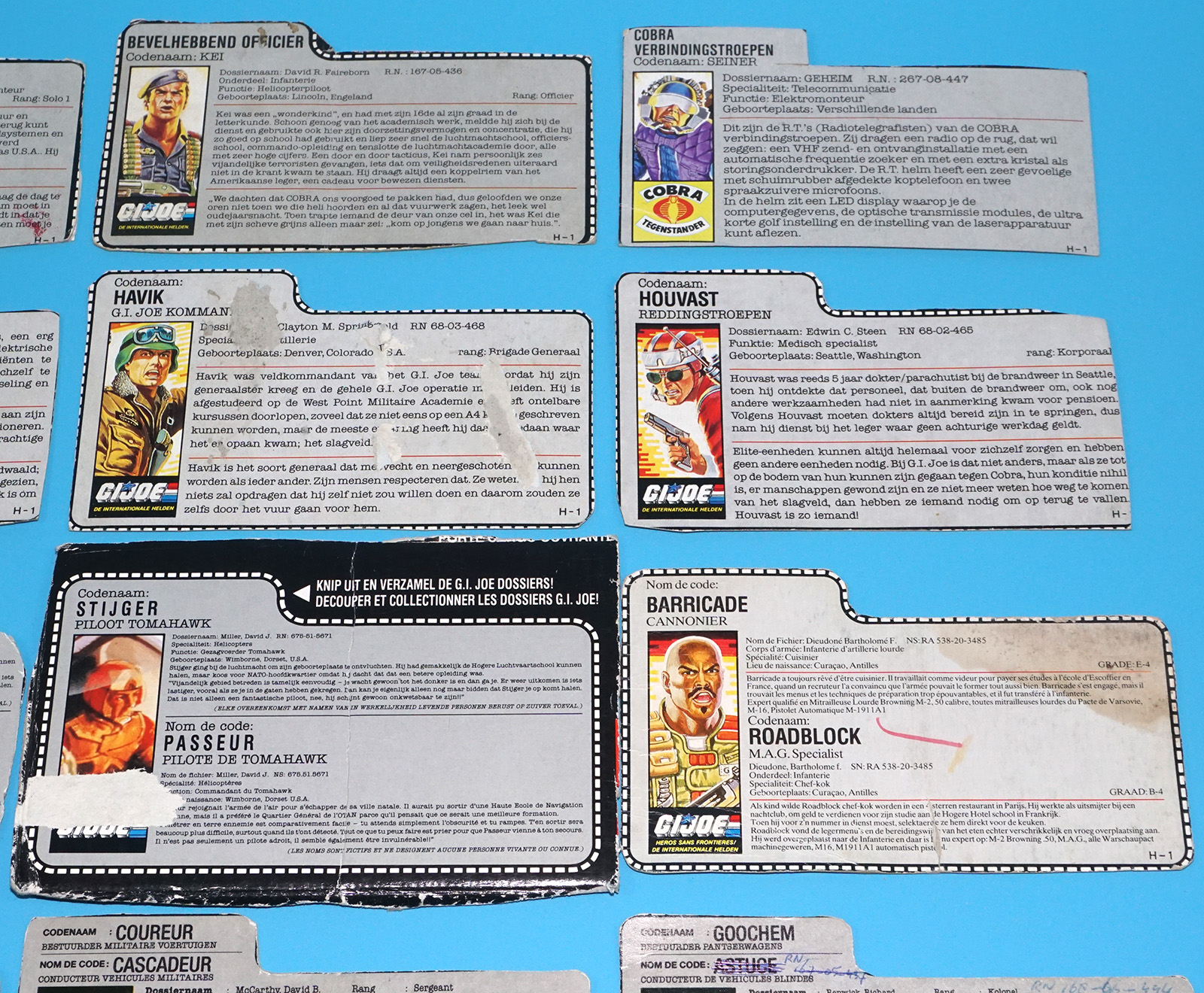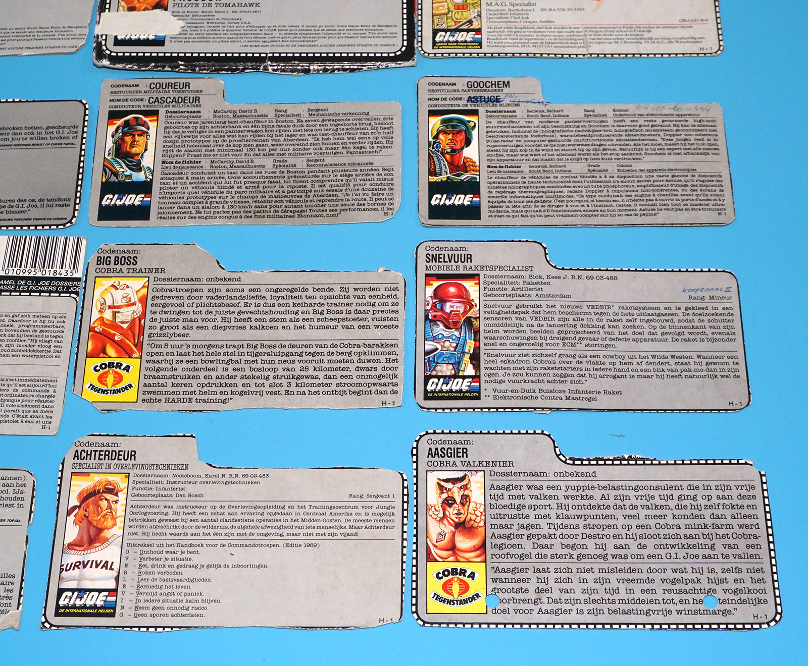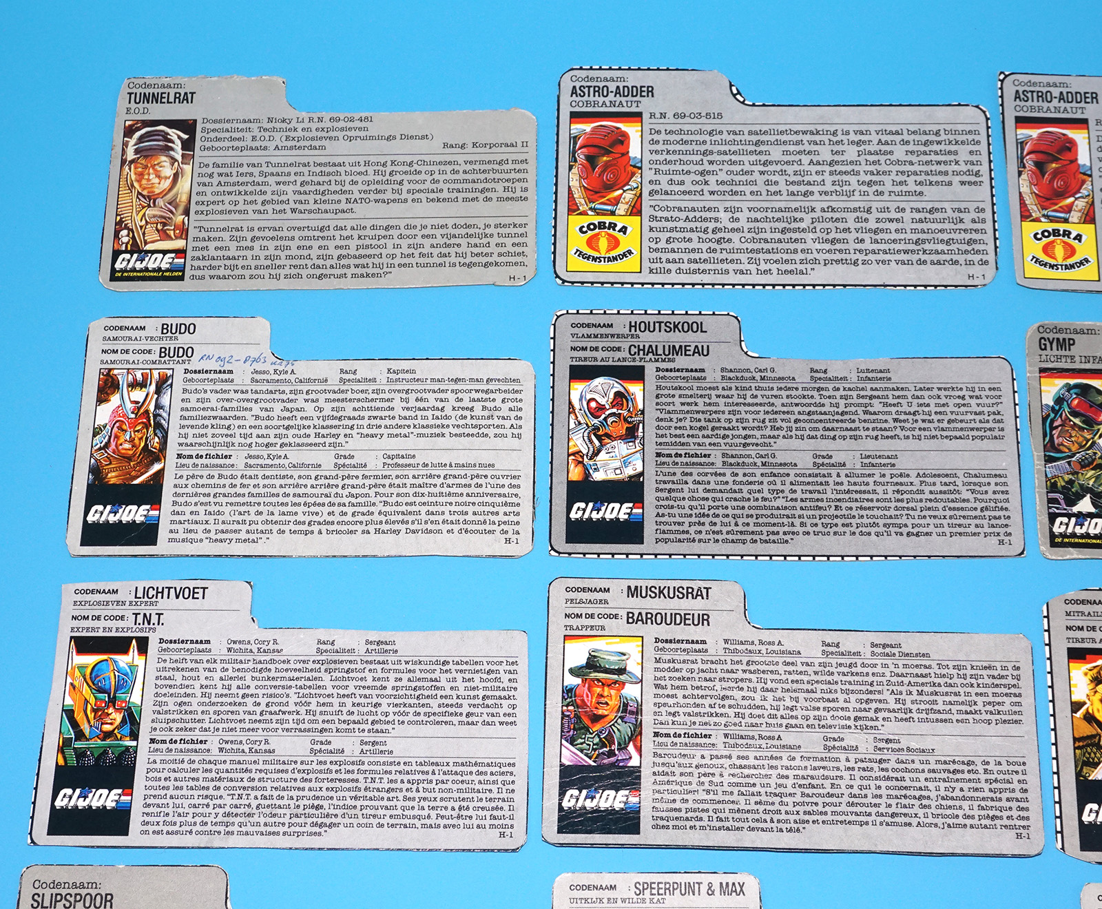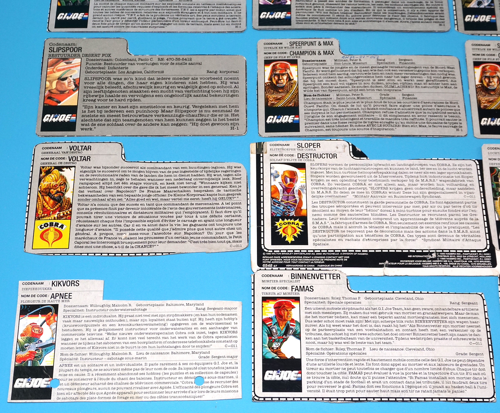 GI JOE FILE CARD LOT FILECARDS (54X) NL FR BENELUX DUTCH EURO 1985-1992 HASBRO