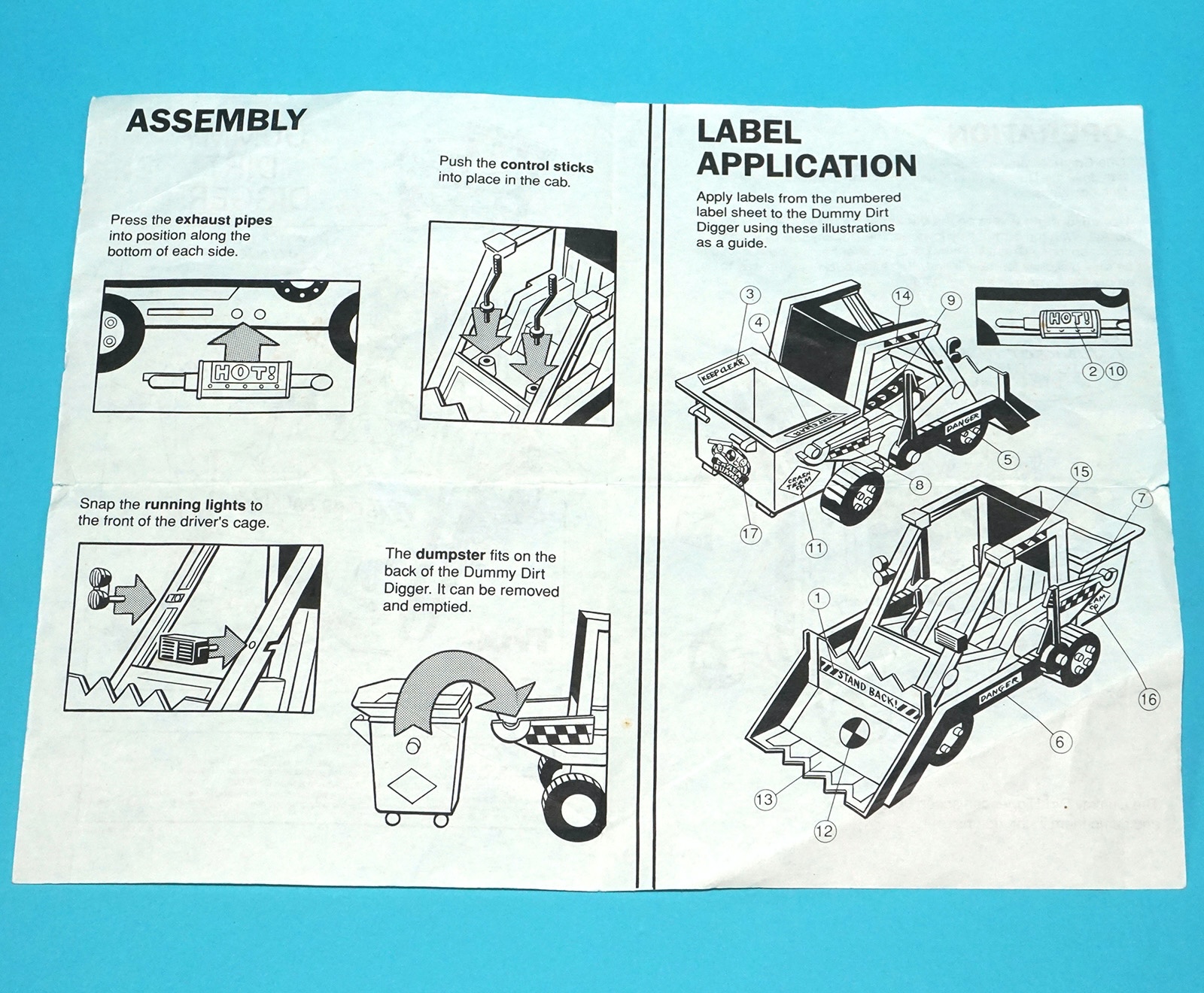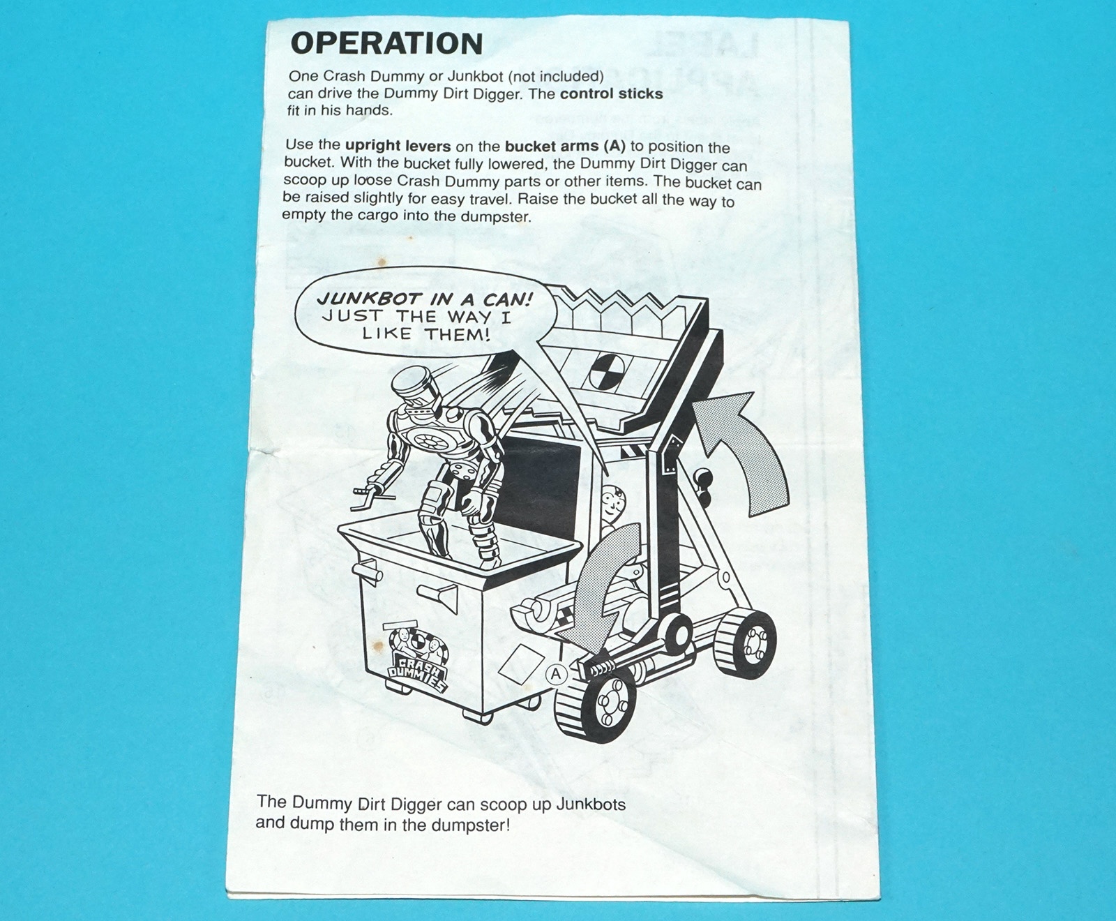 INCREDIBLE CRASH DUMMIES ORIGINAL SPARE INSTRUCTIONS DUMMY DIRT DIGGER US BOX INSERT 1992 TYCO