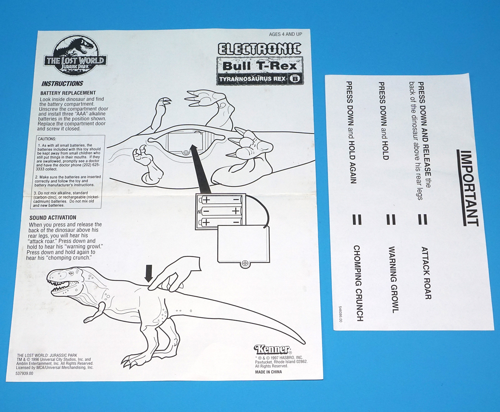 JURASSIC PARK THE LOST WORLD ELECTRONIC BULL T-REX COMPLETE BOXED US BOX 1996 KENNER WORKS!
