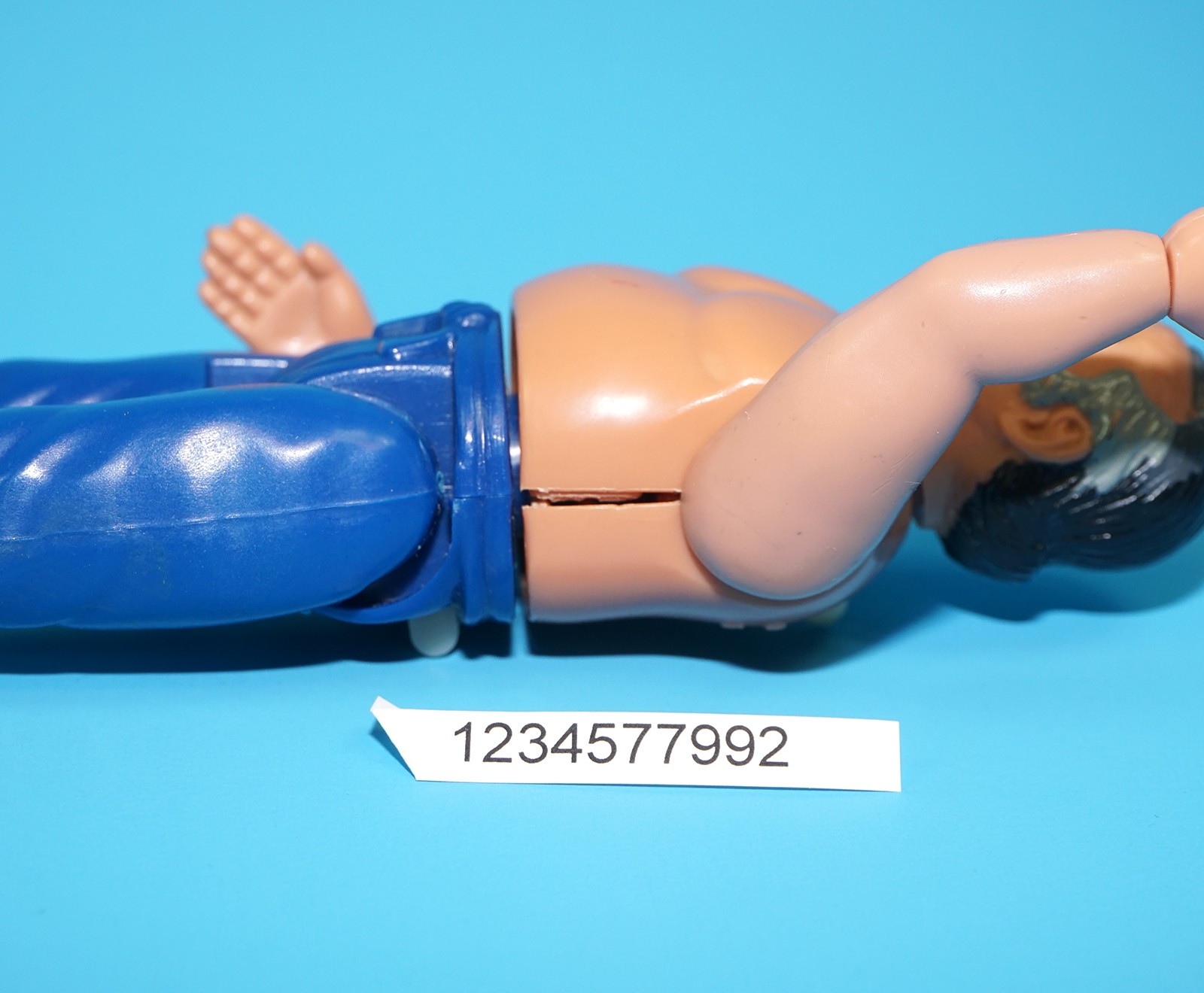 Mechanisms work fine. But has a broken torso peg (splits).