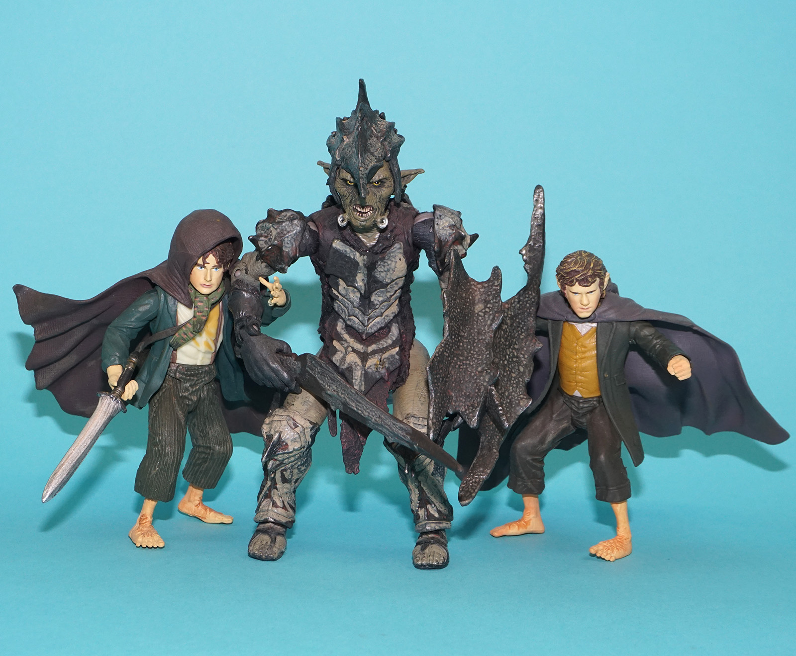 LORD OF THE RINGS LOTR FELLOWSHIP MERRY PIPPIN & ORC MORIA SET 100% COMPLETE 2001 TOY BIZ