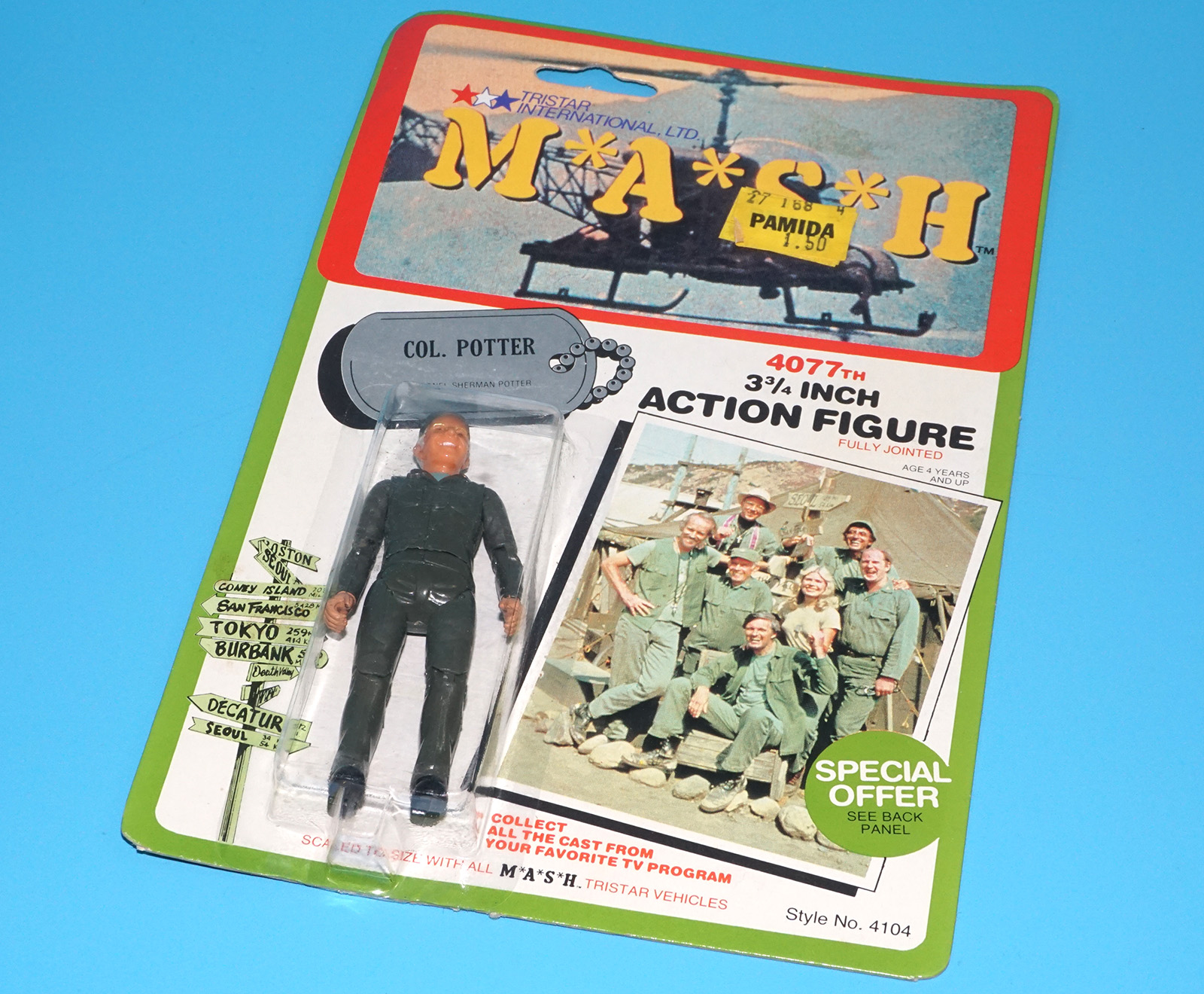 M A S H MASH 4077TH 3 3/4 ACTION FIGURE COL. POTTER MOC MOSC US CARD 1982 TRISTAR INTERNATIONAL LTD