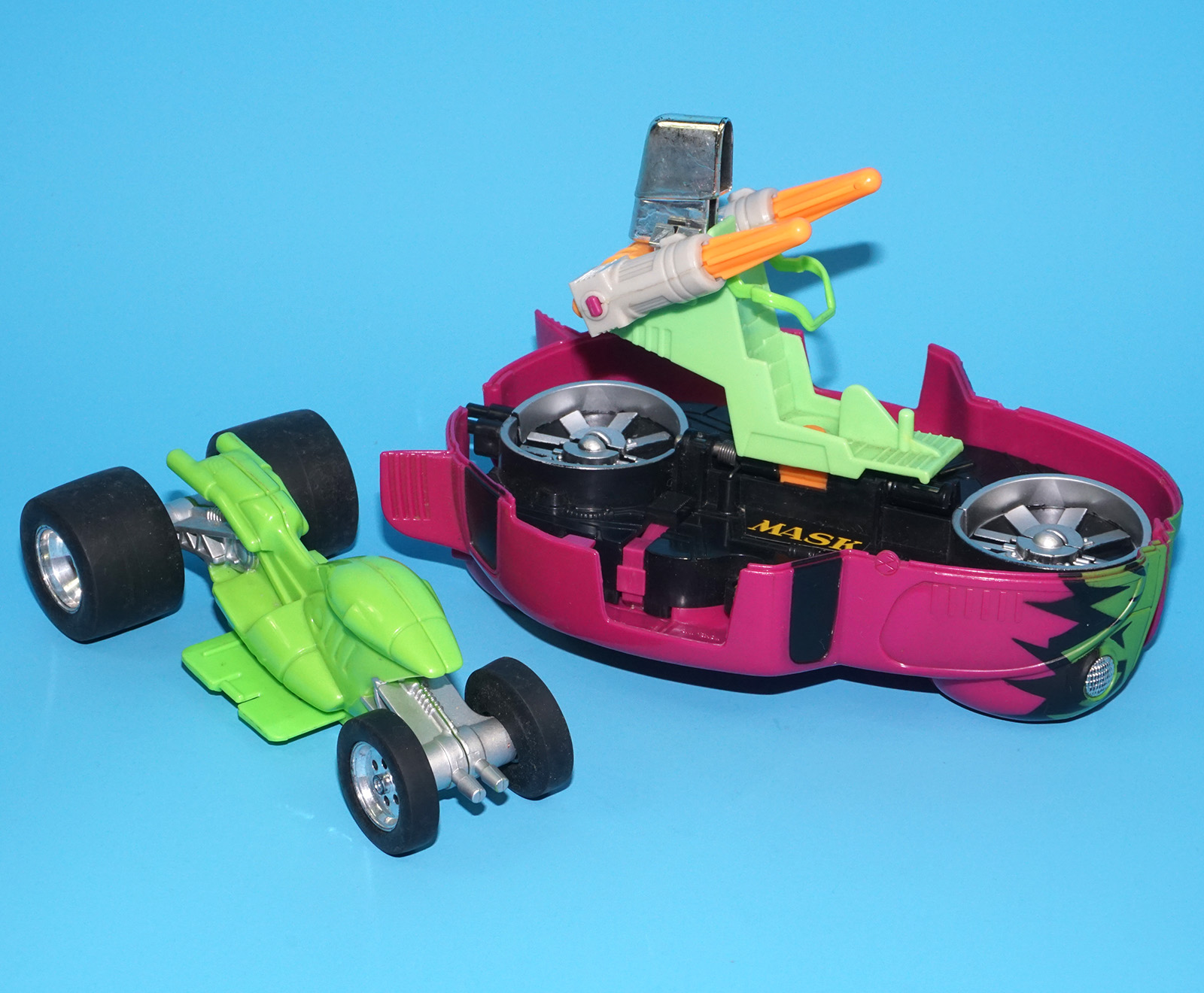 M.A.S.K DETONATOR VW BEETLE & JACQUES LAFLEUR, CLONE & MASKS 100% COMPLETE 1988 KENNER WORKS!