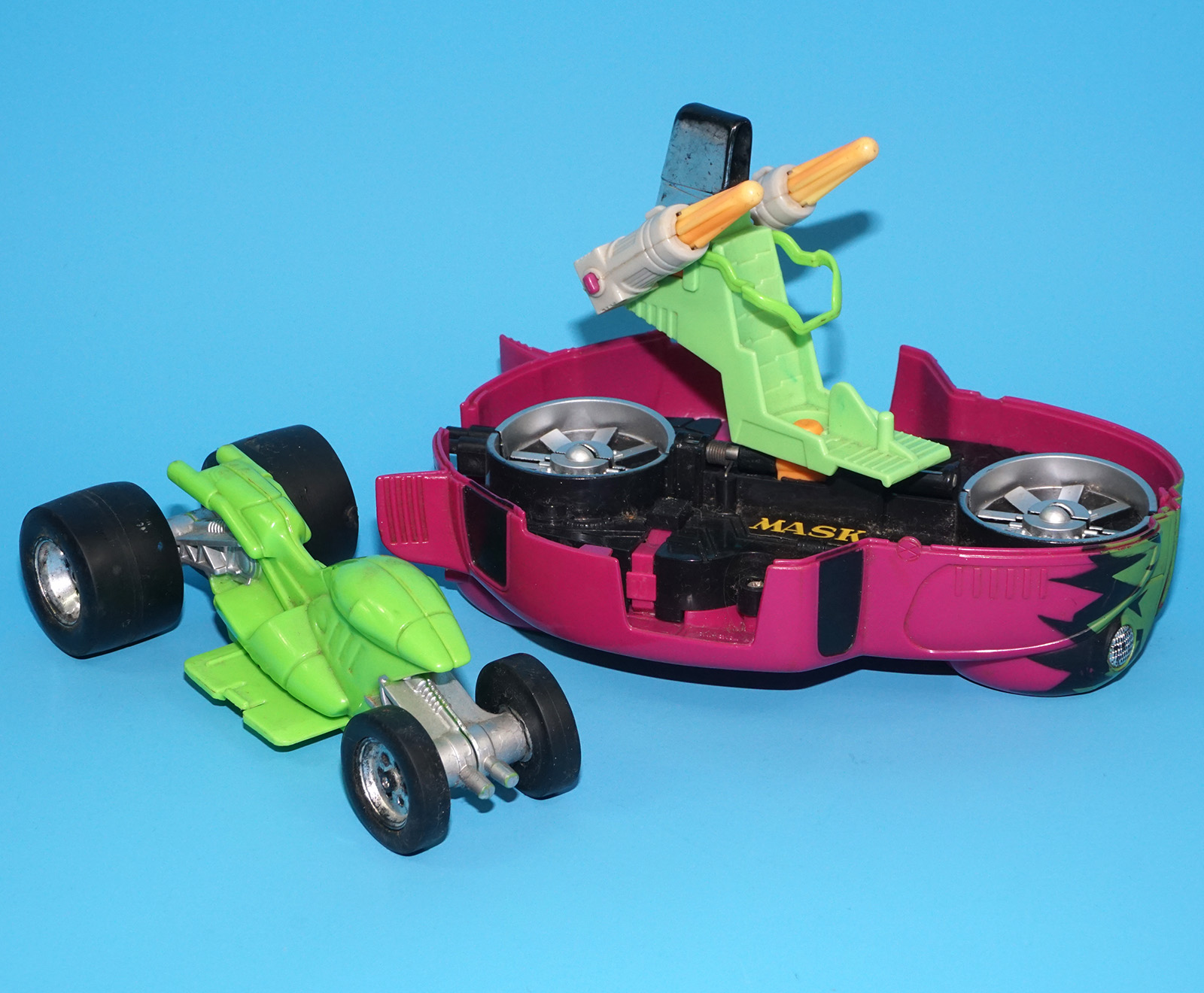 M.A.S.K DETONATOR VW BEETLE & JACQUES LAFLEUR, CLONE & MASKS 100% COMPLETE 1988 KENNER WORKS!
