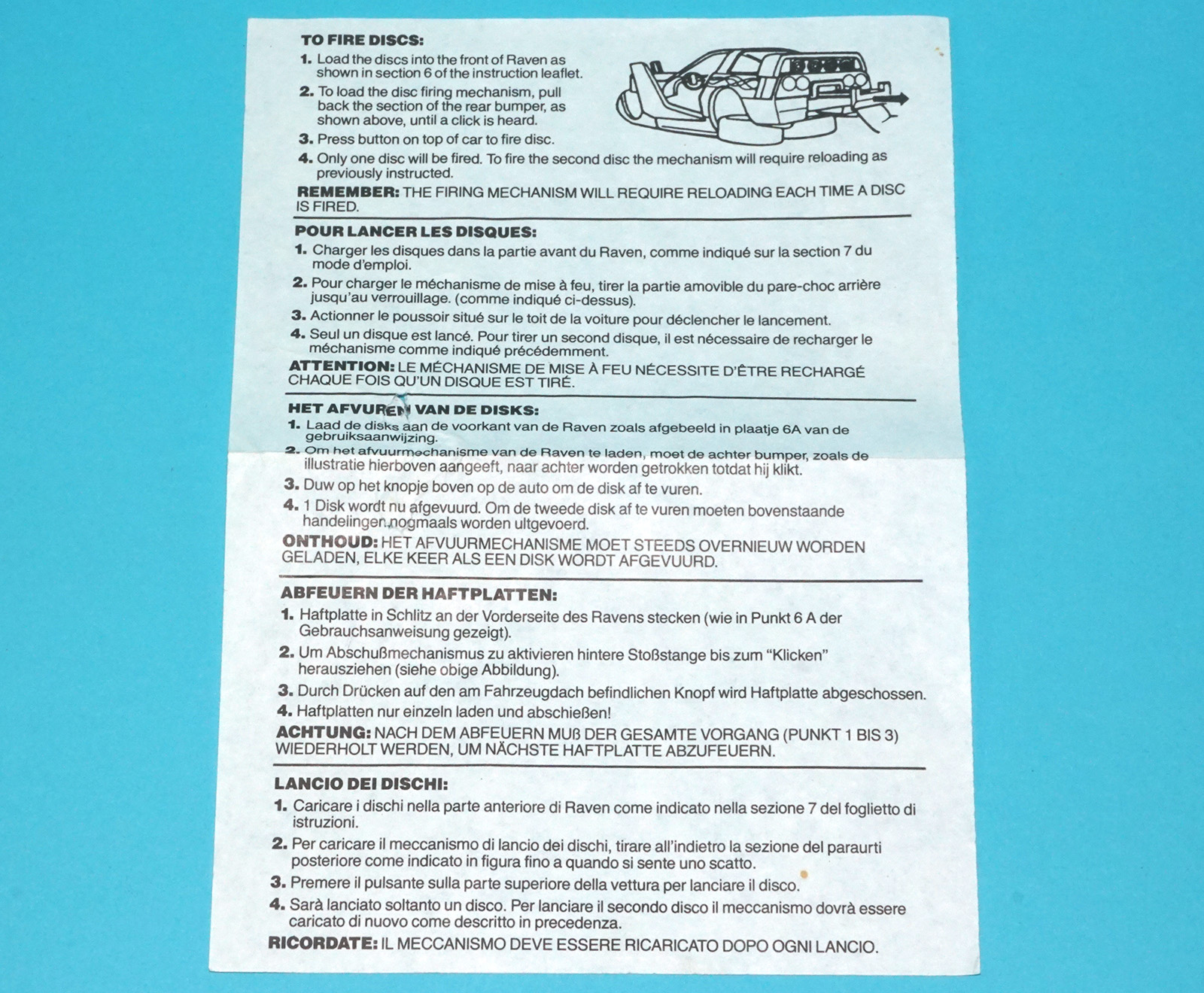 M.A.S.K ORIGINAL SPARE RAVEN DISC FIRING INSTRUCTIONS SHEET INSERT EURO 1986 KENNER