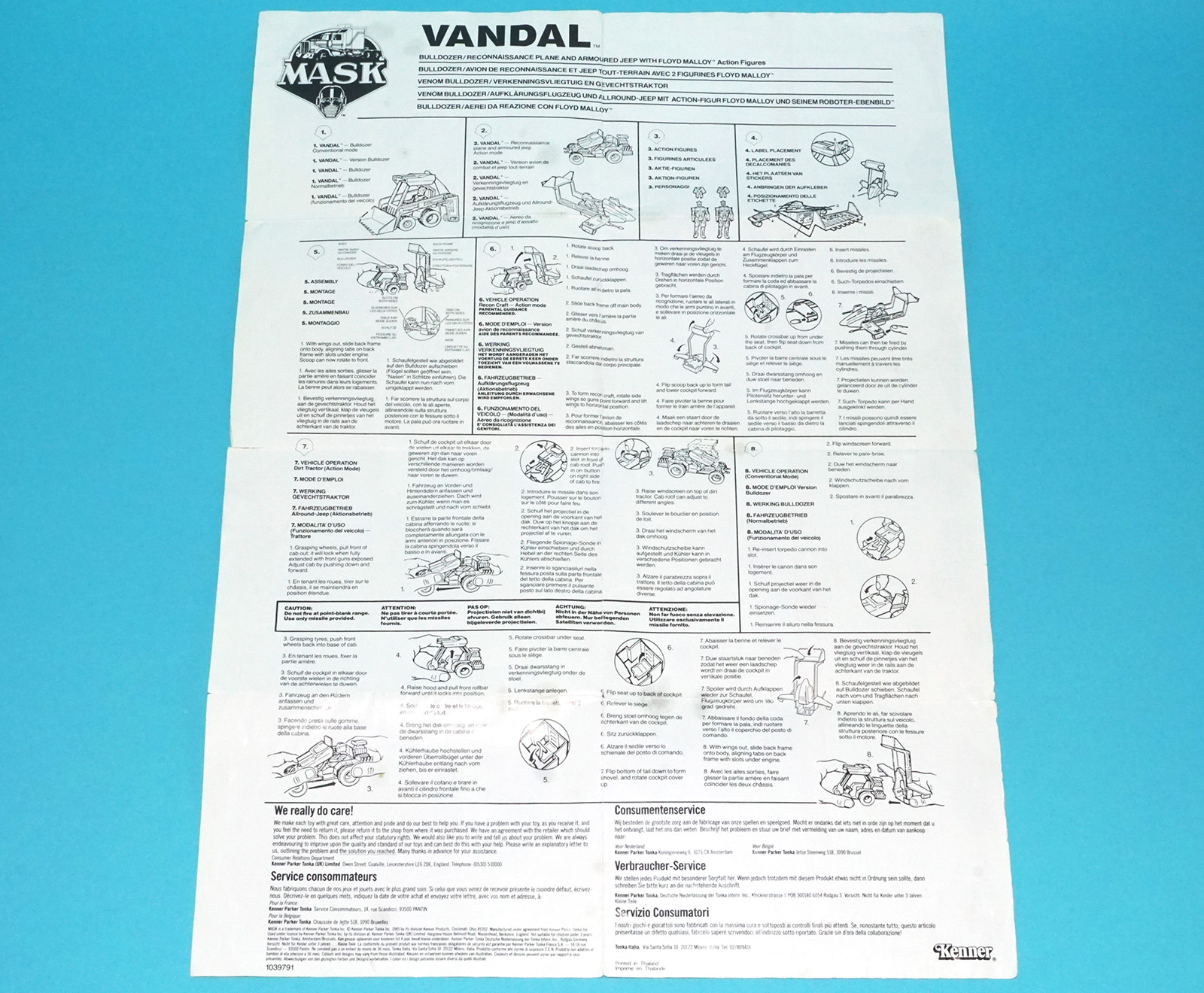 M.A.S.K ORIGINAL SPARE VANDAL INSTRUCTIONS SHEET POSTER INSERT EURO 1988 KENNER