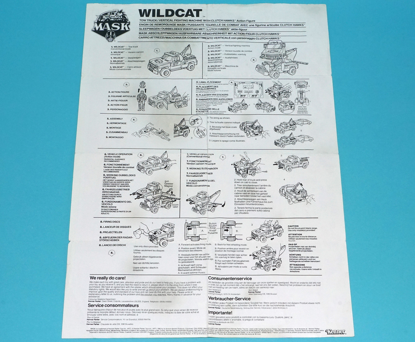 M.A.S.K ORIGINAL SPARE WILDCAT INSTRUCTIONS SHEET POSTER INSERT EURO 1987 KENNER