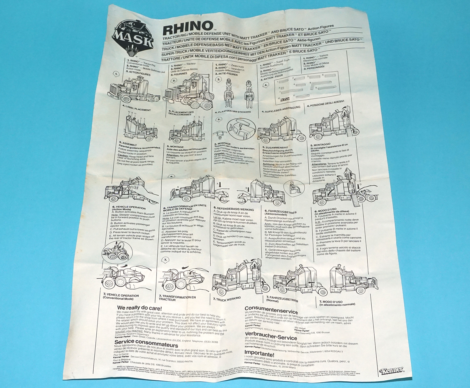 M.A.S.K RHINO TRACTOR RIG COMPLETE BOXED GERMAN EURO BOX TVSAT VARIANT 1985 KENNER HTF