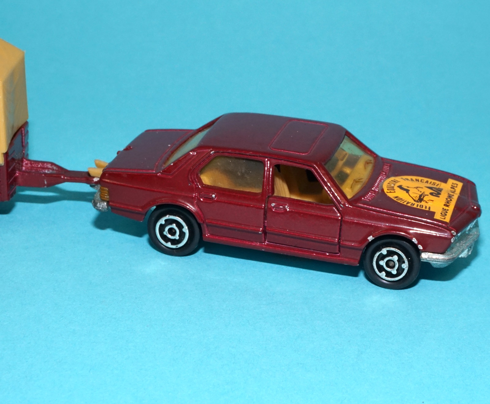 MAJORETTE No 311 256 BMW 733 & HORSE TRAILER 1/60 SCALE 1984 FRANCE NO MATCHBOX