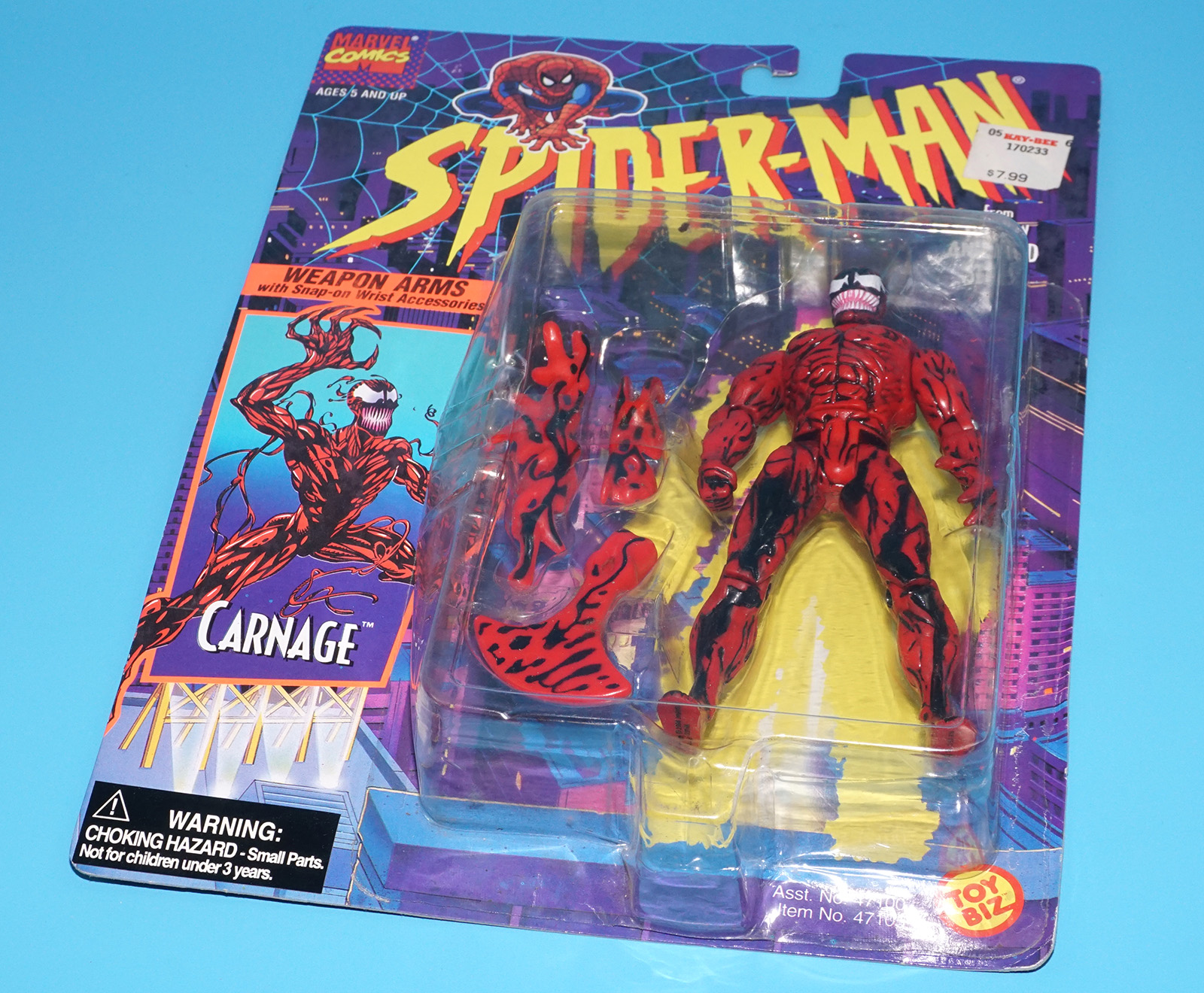 MARVEL SPIDER-MAN ANIMATED SERIES CARNAGE WEAPON ARMS MOC MOSC US CARD 1994 TOY BIZ