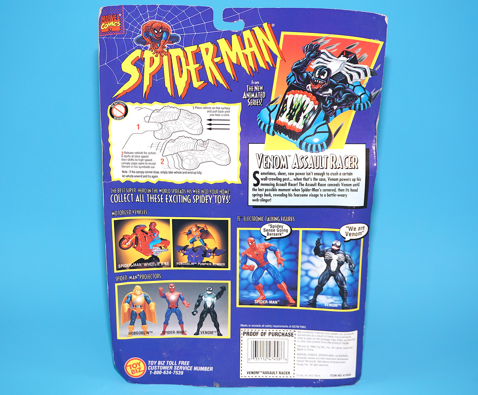 MARVEL SPIDER-MAN ANIMATED SERIES MOTORIZED VENOM ASSAULT RACER MOC MOSC US CARD 1995 TOY BIZ