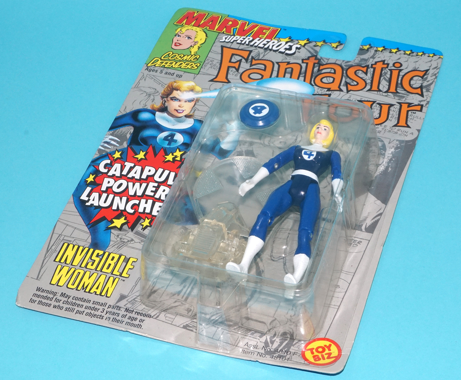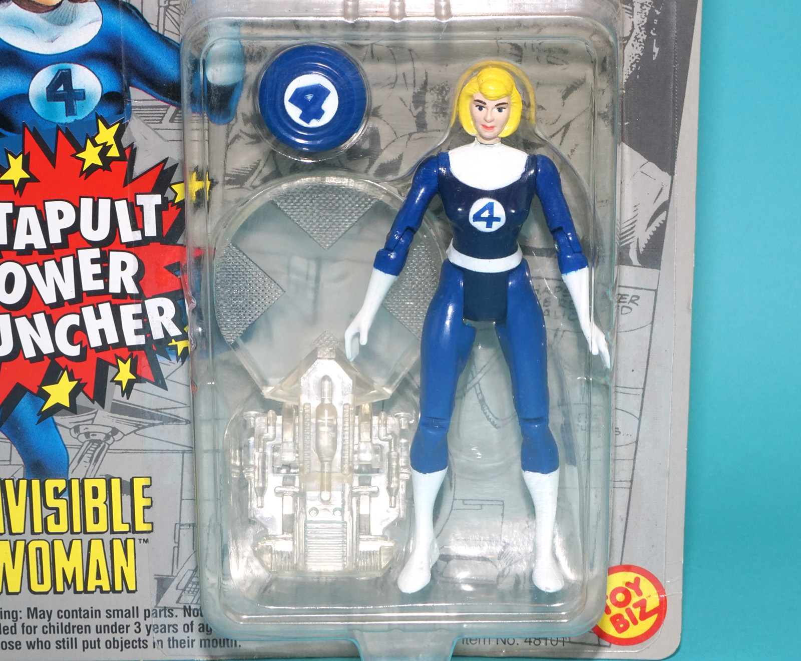 MARVEL SUPER HEROES FANTASTIC FOUR INVISIBLE WOMAN CATAPULT POWER MOC MOSC US CARD 1994 TOY BIZ