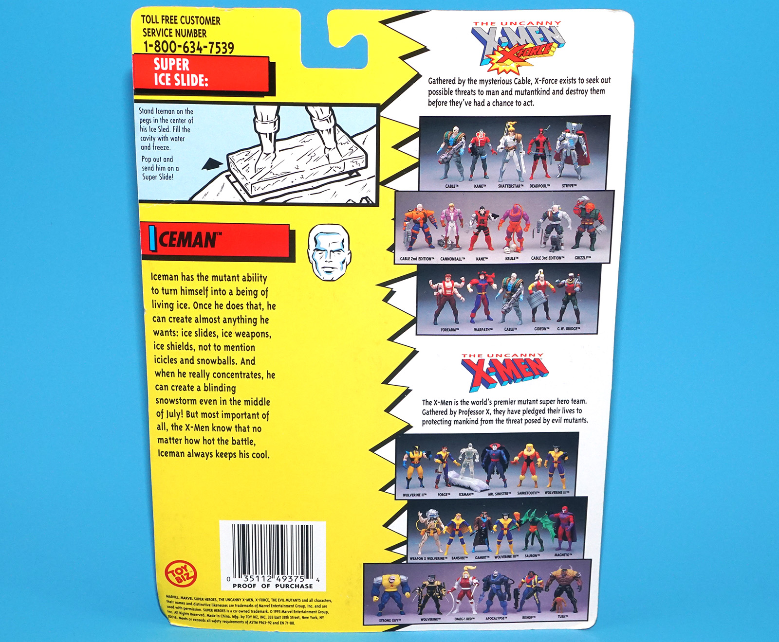 MARVEL X-MEN THE UNCANNY ICEMAN MOC MOSC US CARD 1993 TOY BIZ
