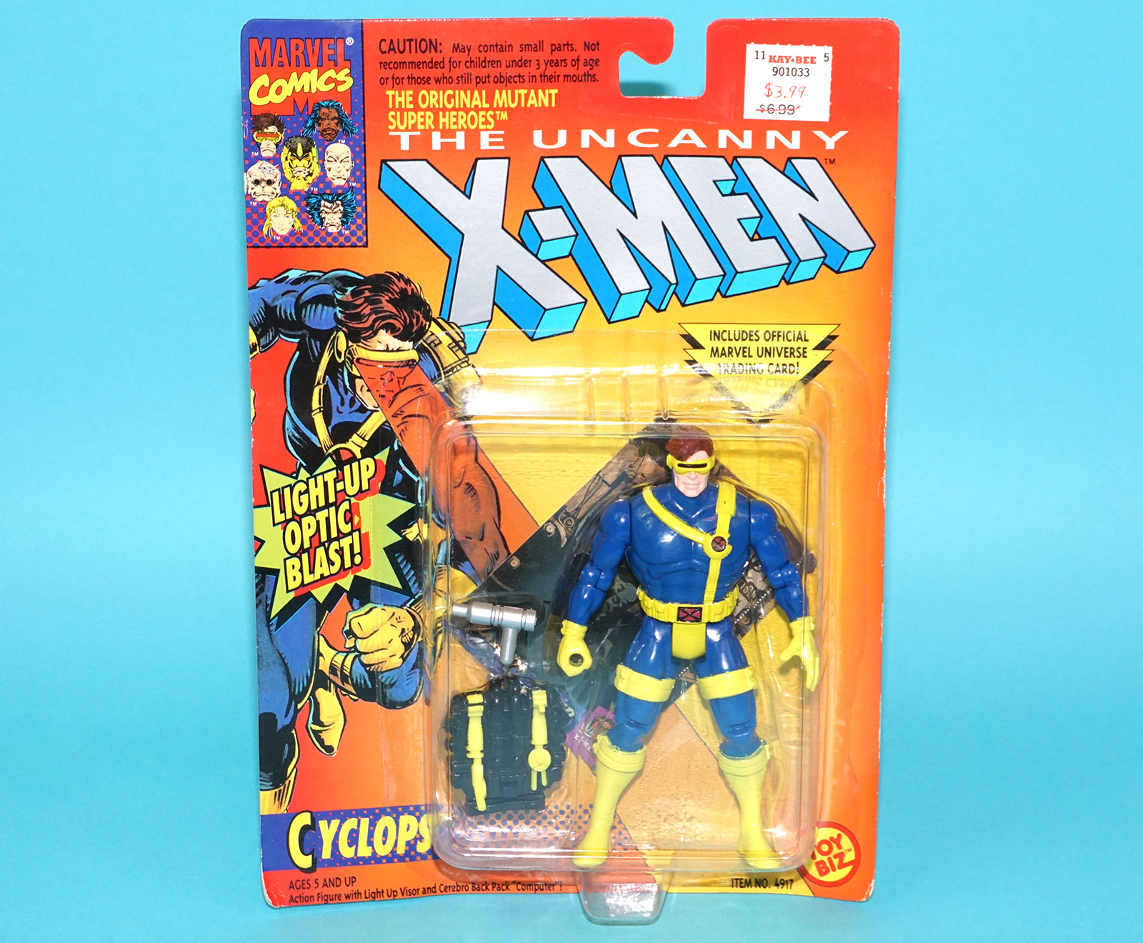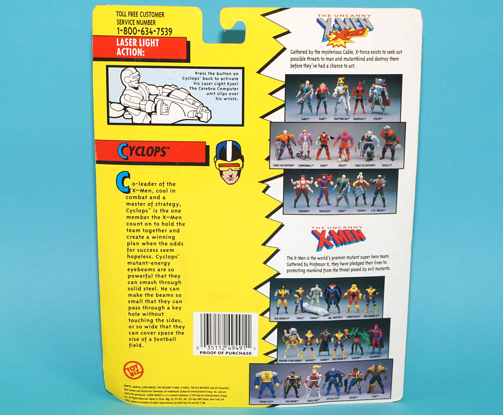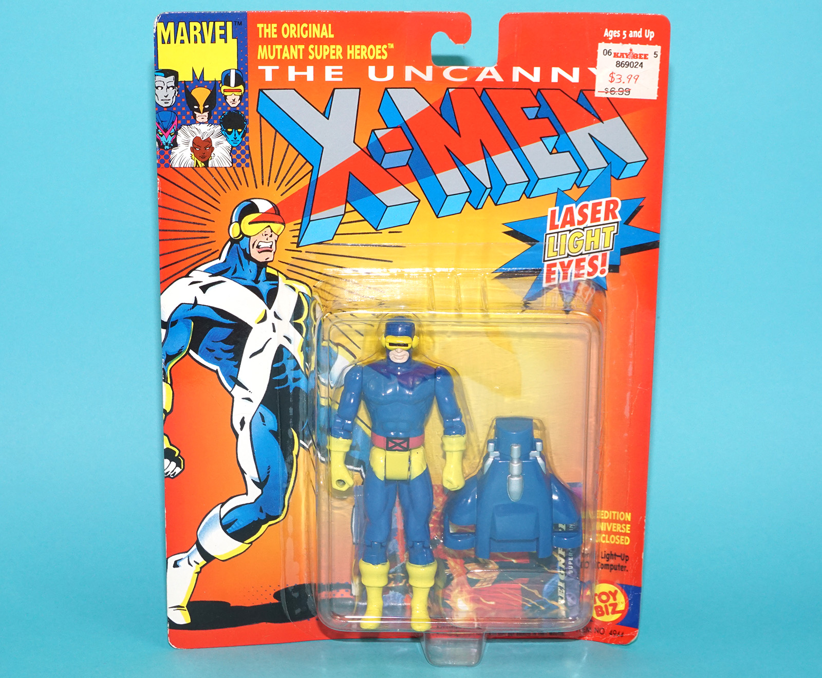 MARVEL X-MEN THE UNCANNY CYCLOPS LASER LIGHT EYES MOC MOSC US CARD 1993 TOY BIZ
