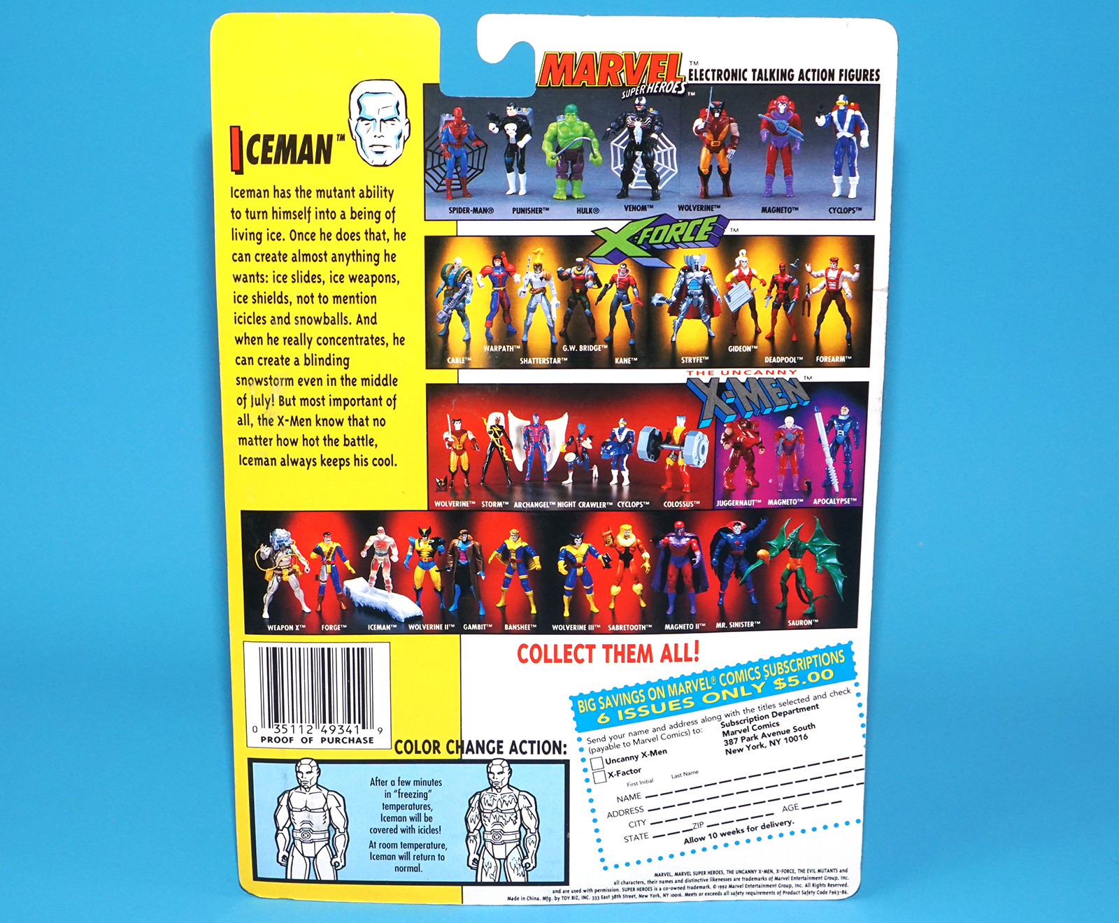 MARVEL X-MEN THE UNCANNY ICEMAN COLOR CHANGE BODY MOC MOSC US CARD 1992 TOY BIZ