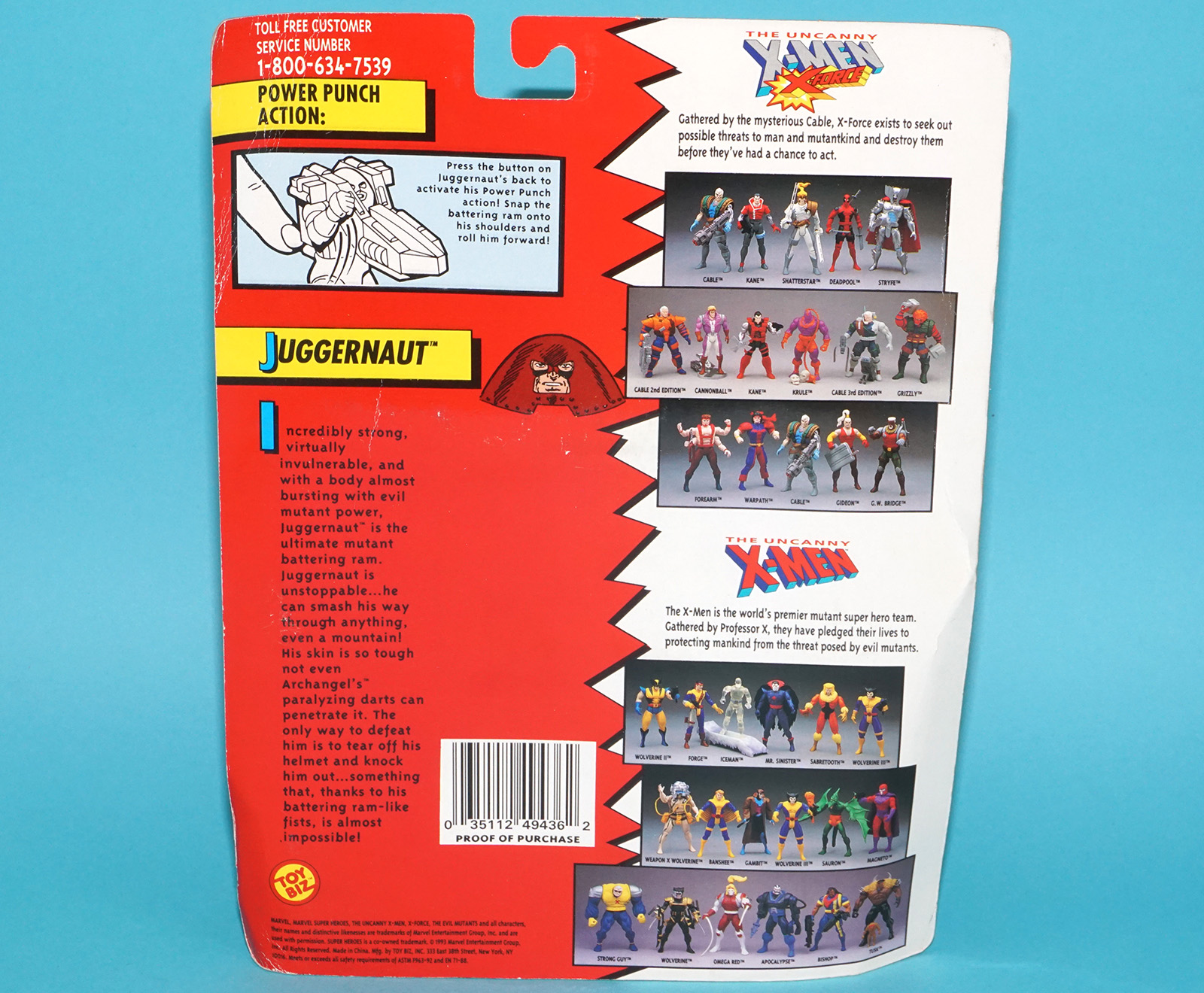 MARVEL X-MEN THE UNCANNY JUGGERNAUT POWER PUNCH ACTION MOC MOSC US CARD 1993 TOY BIZ