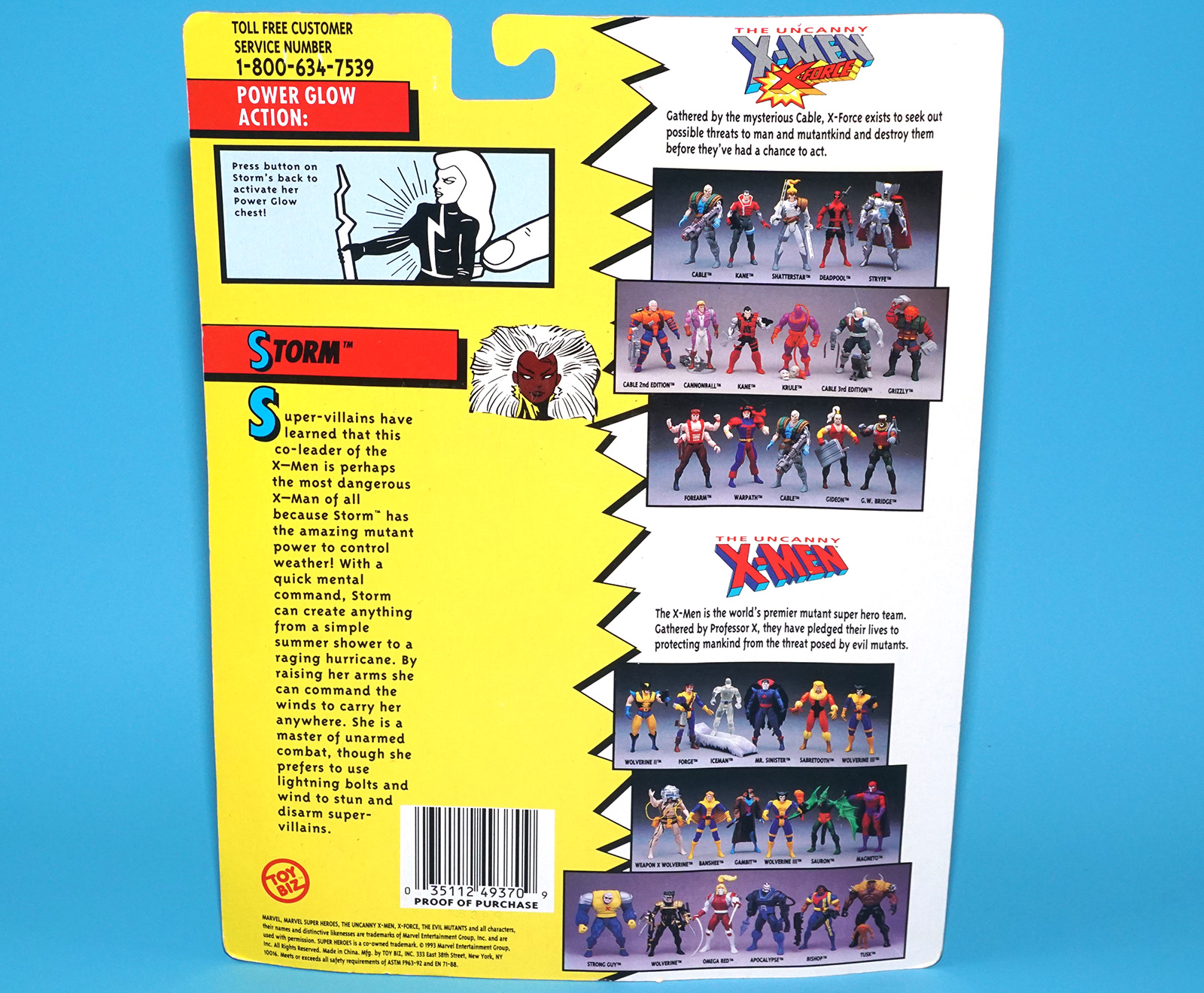 MARVEL X-MEN THE UNCANNY POWER GLOW STORM SILVER SUIT MOC MOSC US CARD 1993 TOY BIZ TOYBIZ