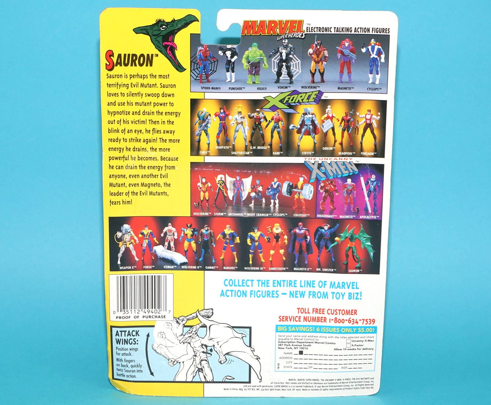 MARVEL X-MEN THE UNCANNY SAURON MOC MOSC US CARD 1993 TOY BIZ