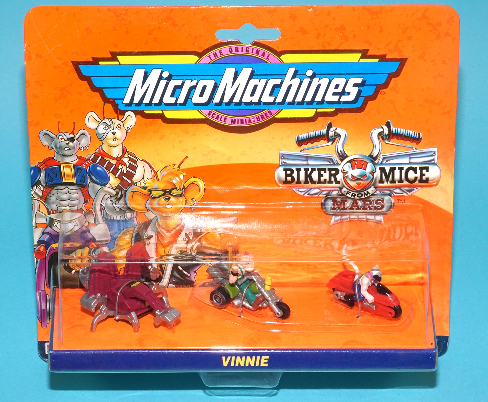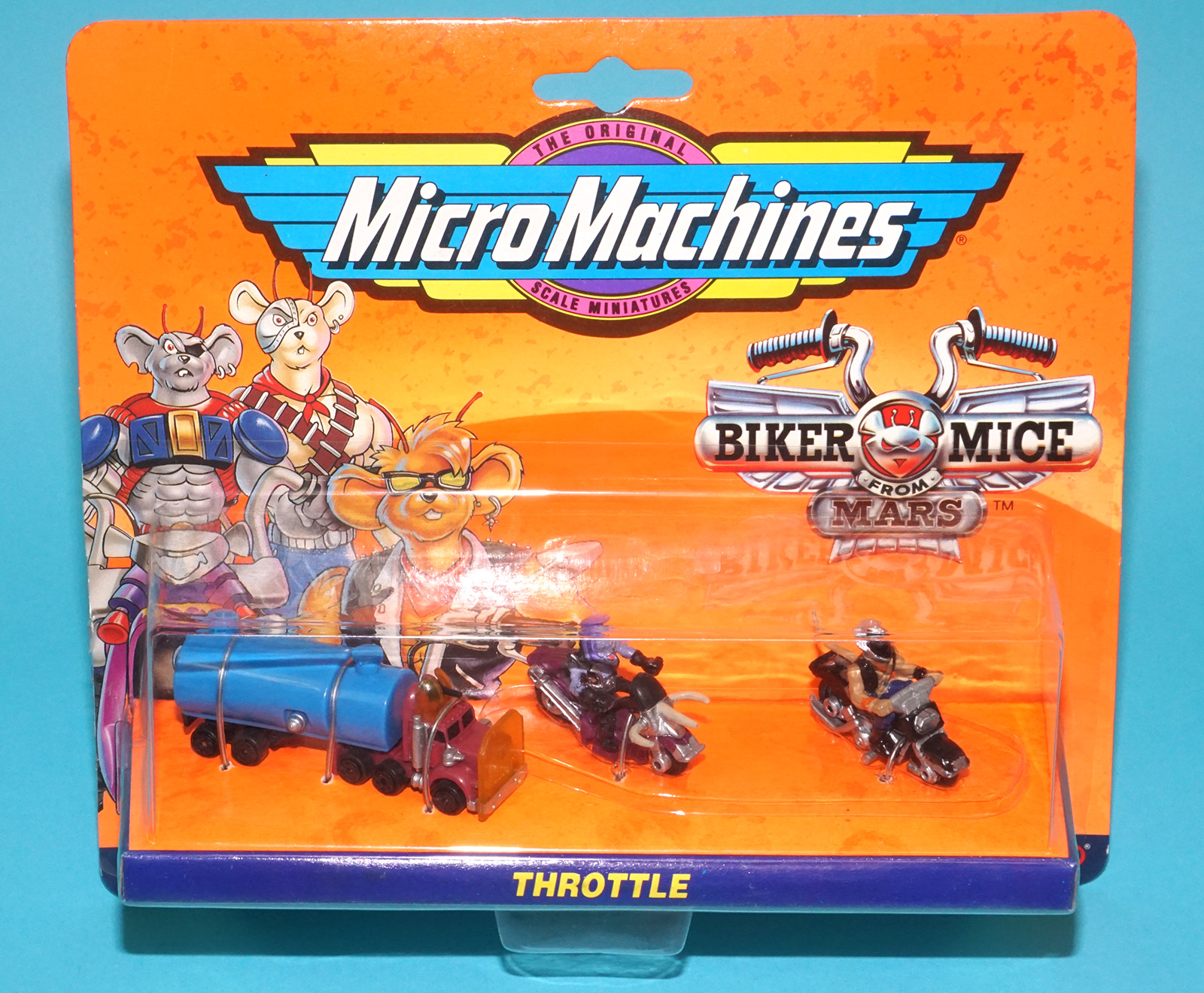 MICRO MACHINES BIKER MICE FROM MARS #1 THROTTLE MOC MOSC EURO CARD 1994 GALOOB IDEAL
