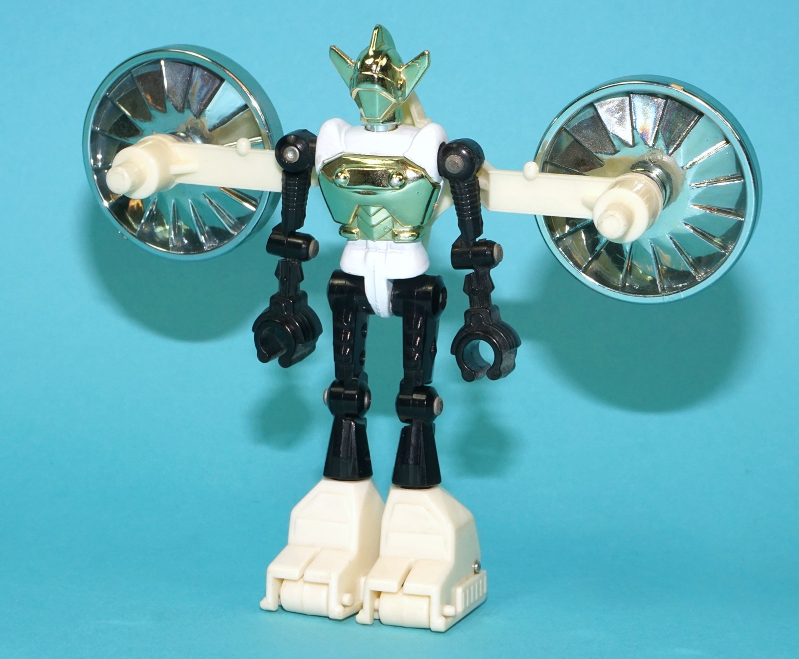 Very good! Gold figure, silver backpack rotors.