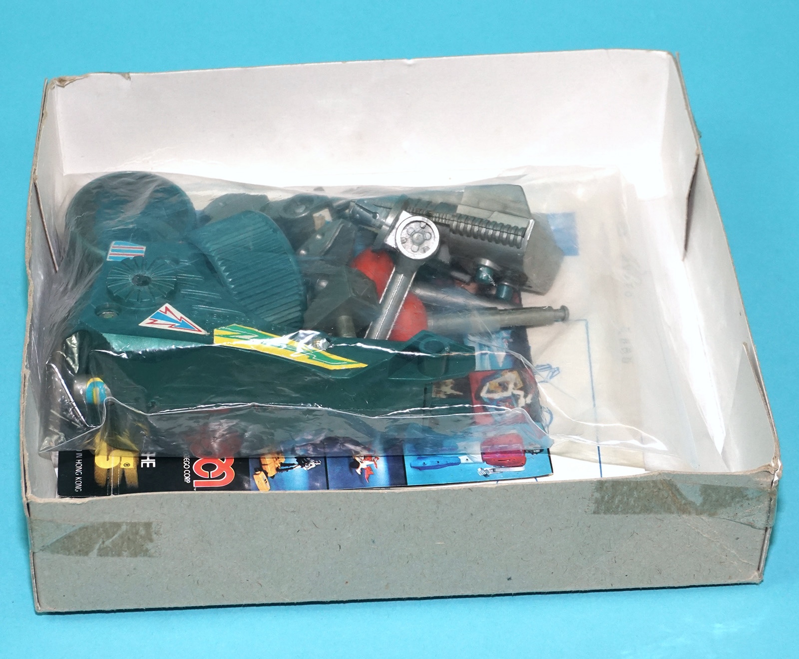 Complete with instructions and box inserts. Wheels don’t stay on well (common issue).