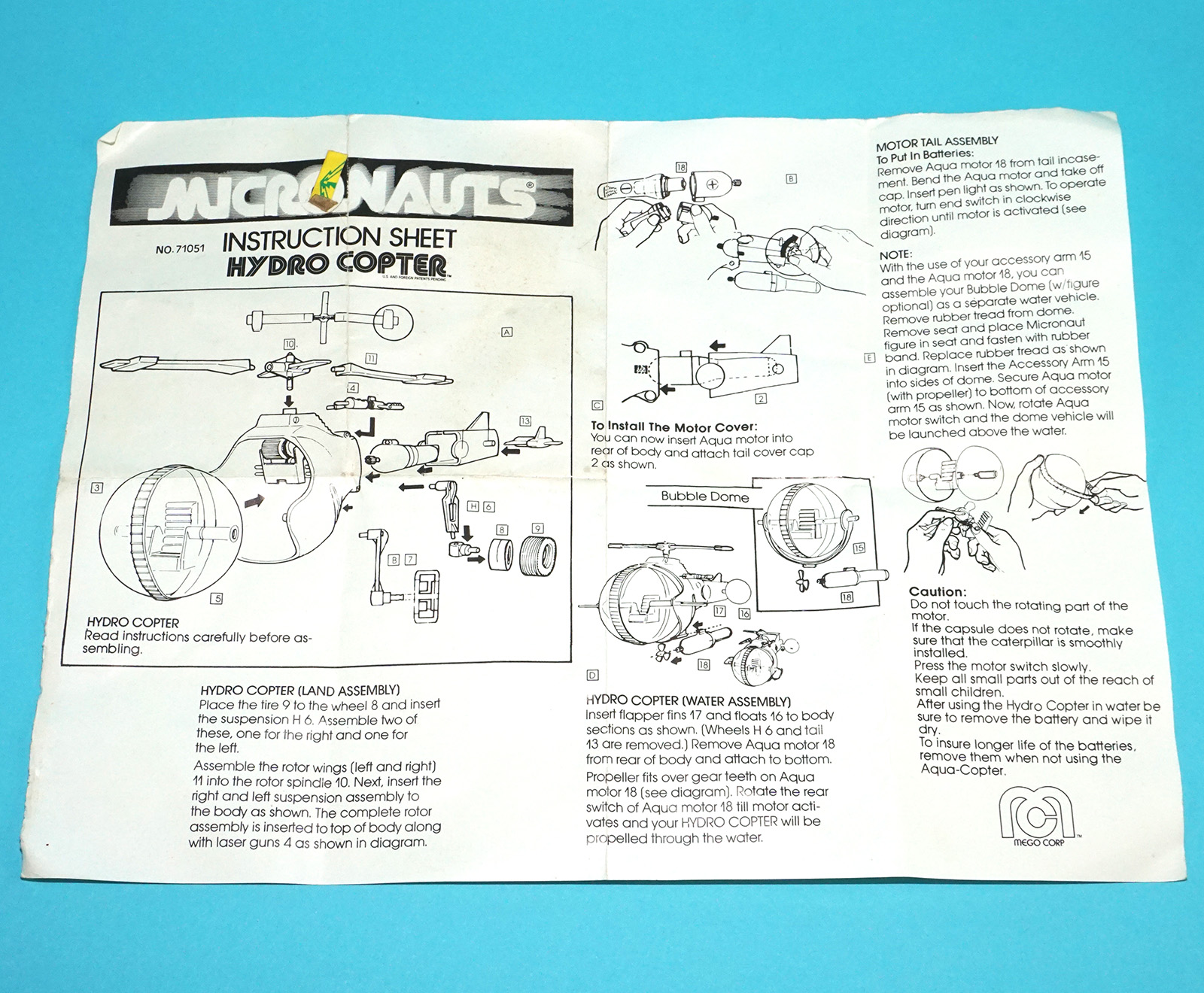 MICRONAUTS ORIGINAL SPARE INSTRUCTIONS HYDRO COPTER + STICKER SHEET USA 1977 MEGO CORP
