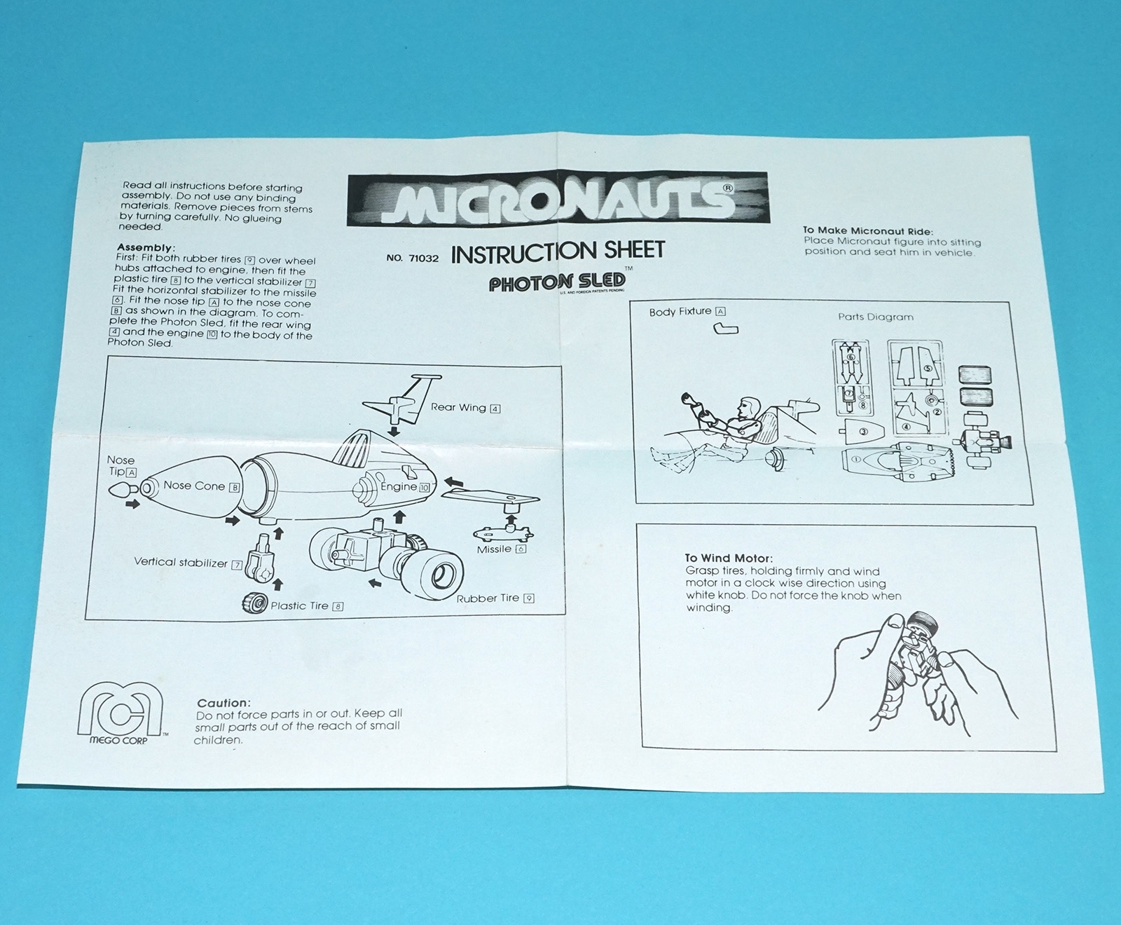 MICRONAUTS ORIGINAL SPARE INSTRUCTIONS PHOTON SLED USA 1977 MEGO CORP