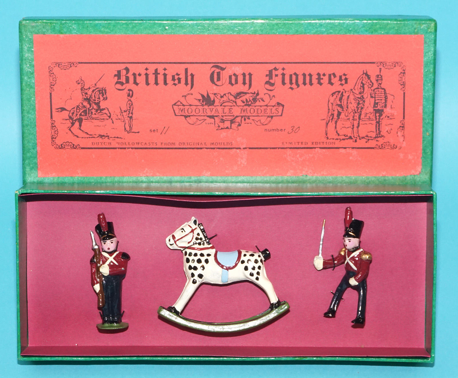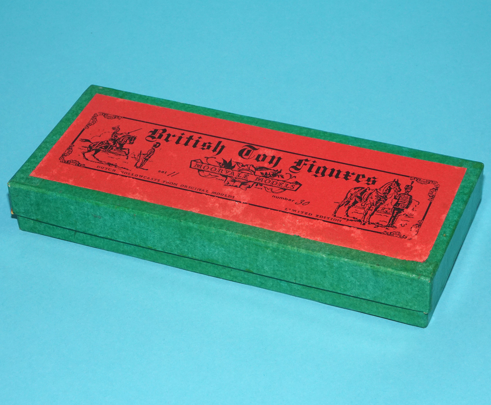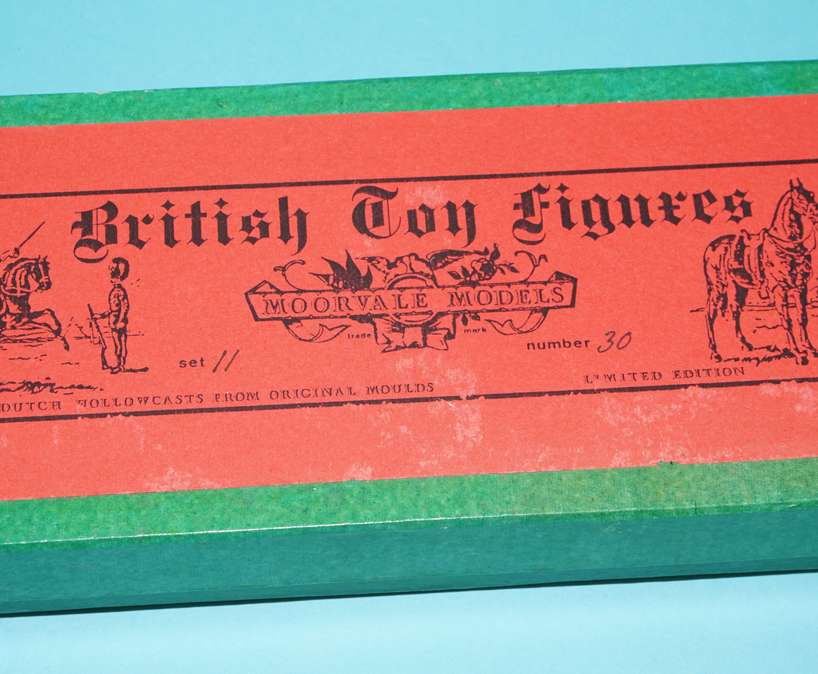 Moorvale Models are hollow cast toy figures made in Holland in the 1980s. Original moulds by Timpo, JoHillco, Britains, Taylor & Barrett, Charbens and others were used in the process. These figures are handpainted models to vintage standards. All sets were limited to 10 – 20 releases. Many sets were planned but never produced. Box excellent, contents mint!