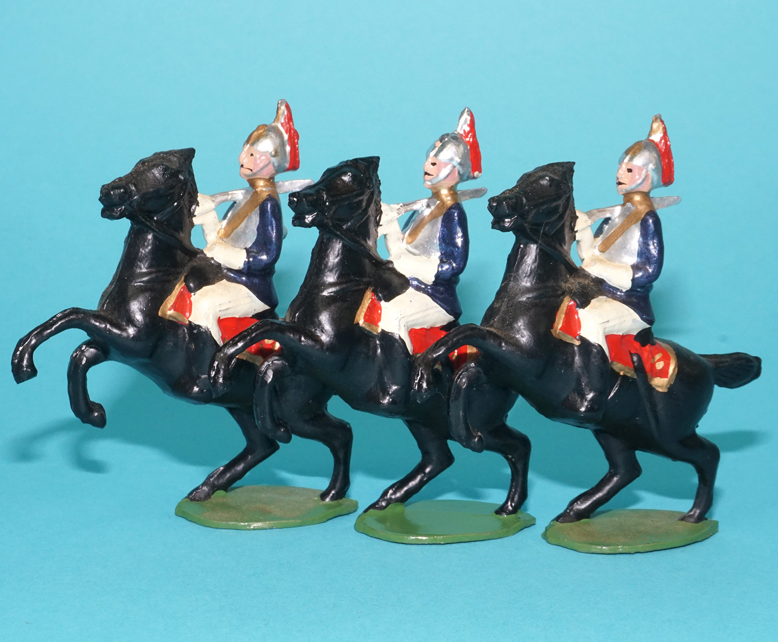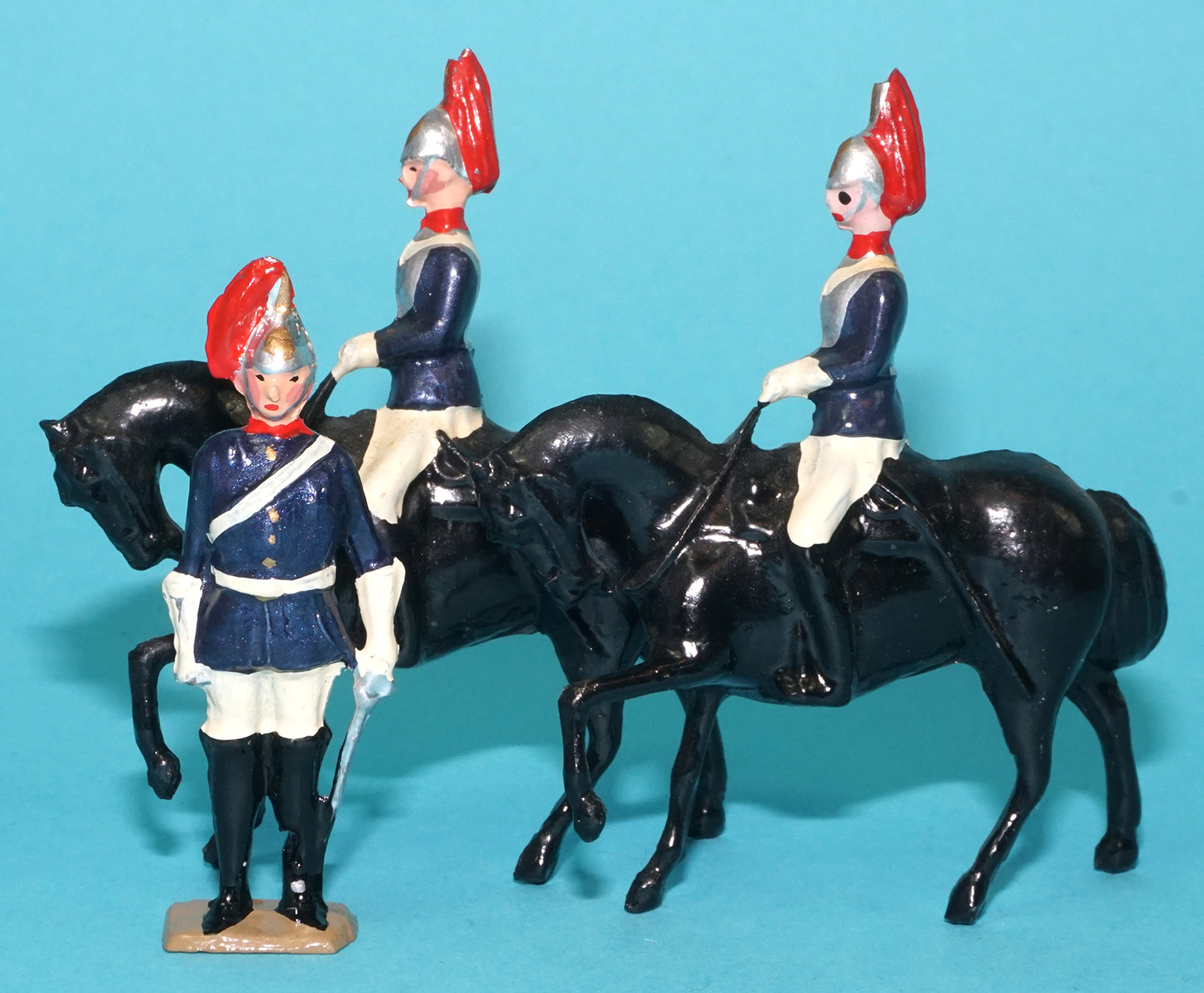 MOORVALE MODELS HOLLOWCAST PAINT SAMPLE SOLDIERS KING’S HORSE GUARDS (3X) 1:32 SCALE TIMPO JOHILLCO BRITAINS