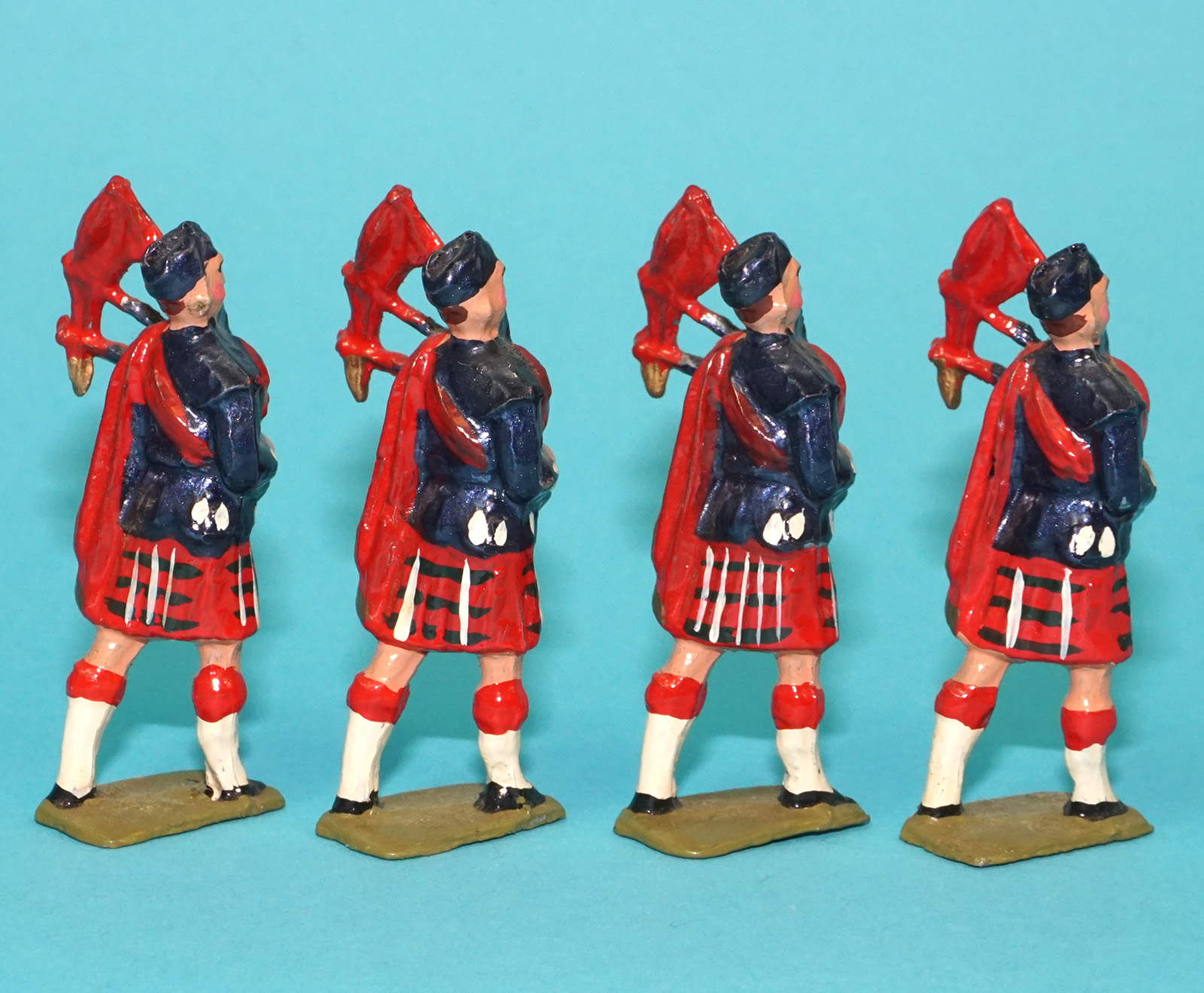 MOORVALE MODELS HOLLOWCAST PAINT SAMPLE SOLDIERS SCOTS GUARDS BAGPIPERS (4X) 1:32 SCALE BRITAINS TIMPO JOHILLCO