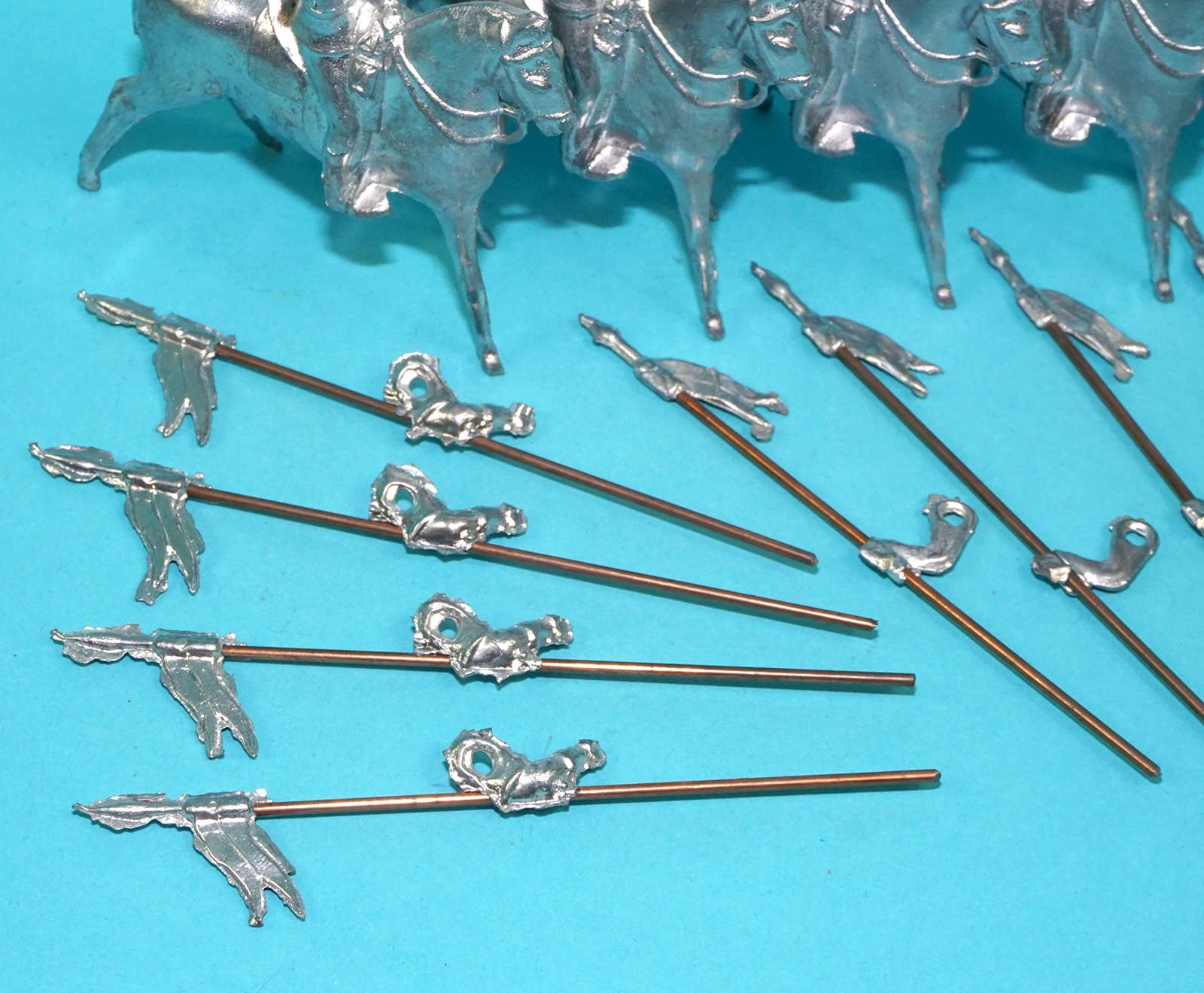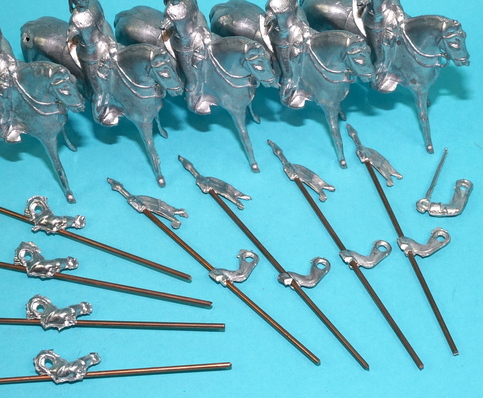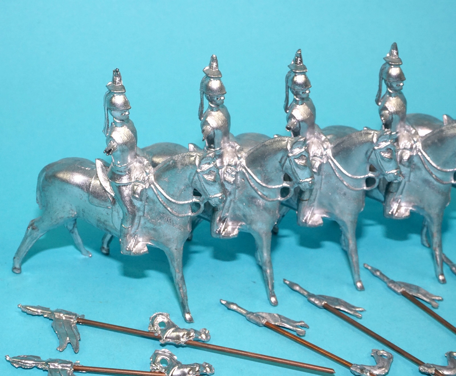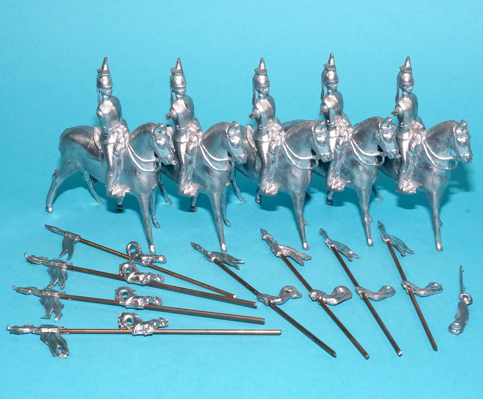 MOORVALE MODELS HOLLOWCAST UNPAINTED LEAD CASTING SOLDIERS MOUNTED LANCERS (5X) 1:32 SCALE BRITAINS TIMPO JOHILLCO